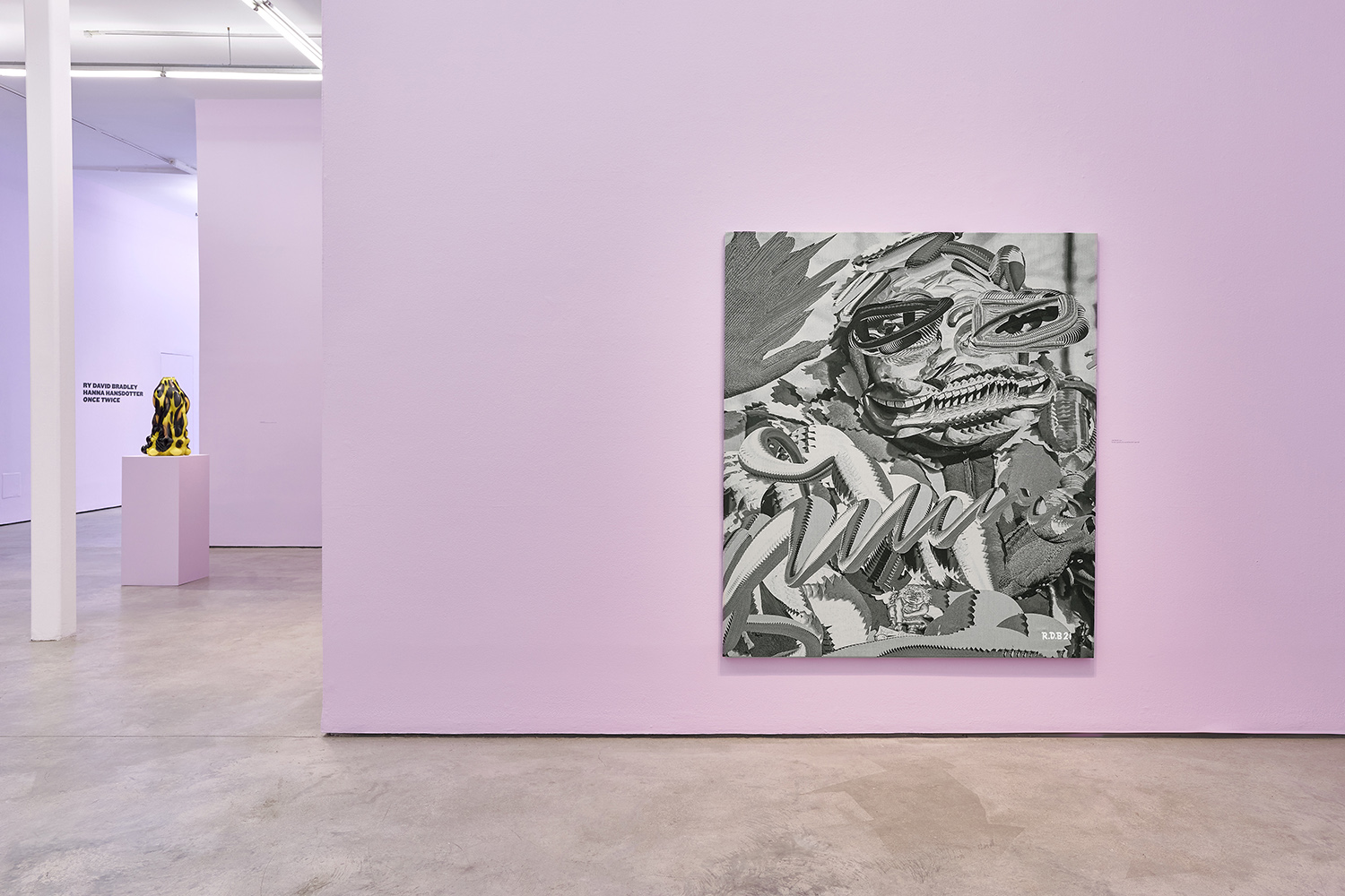 Graduating in 2013 with an MFA from Victorian College of the Arts, Melbourne University, Ry David Bradley has exhibited internationally including LA, London, New York, Berlin, Brussels, Milan, Cologne, Sydney and Melbourne. His work often shifts media but always looks closely at painting in the 21st century, the new opportunities and the shortcomings in our digital moment. Recent solo exhibitions include Moonlight Painting at Gana Art Nineone in Seoul, GEN at Sullivan+Strumpf in Melbourne, NOVACENE: PORTRAITS OF A MACHINE at The Hole, and Life Drawing, at Allouche Benias Gallery in Athens. His work debuted in the USA with Bill Brady Gallery in Kansas City in 2015 with Access All Areas. His work is in public and private collections across the world, including at the Aldala Collection and the National Gallery of Victoria in Melbourne.