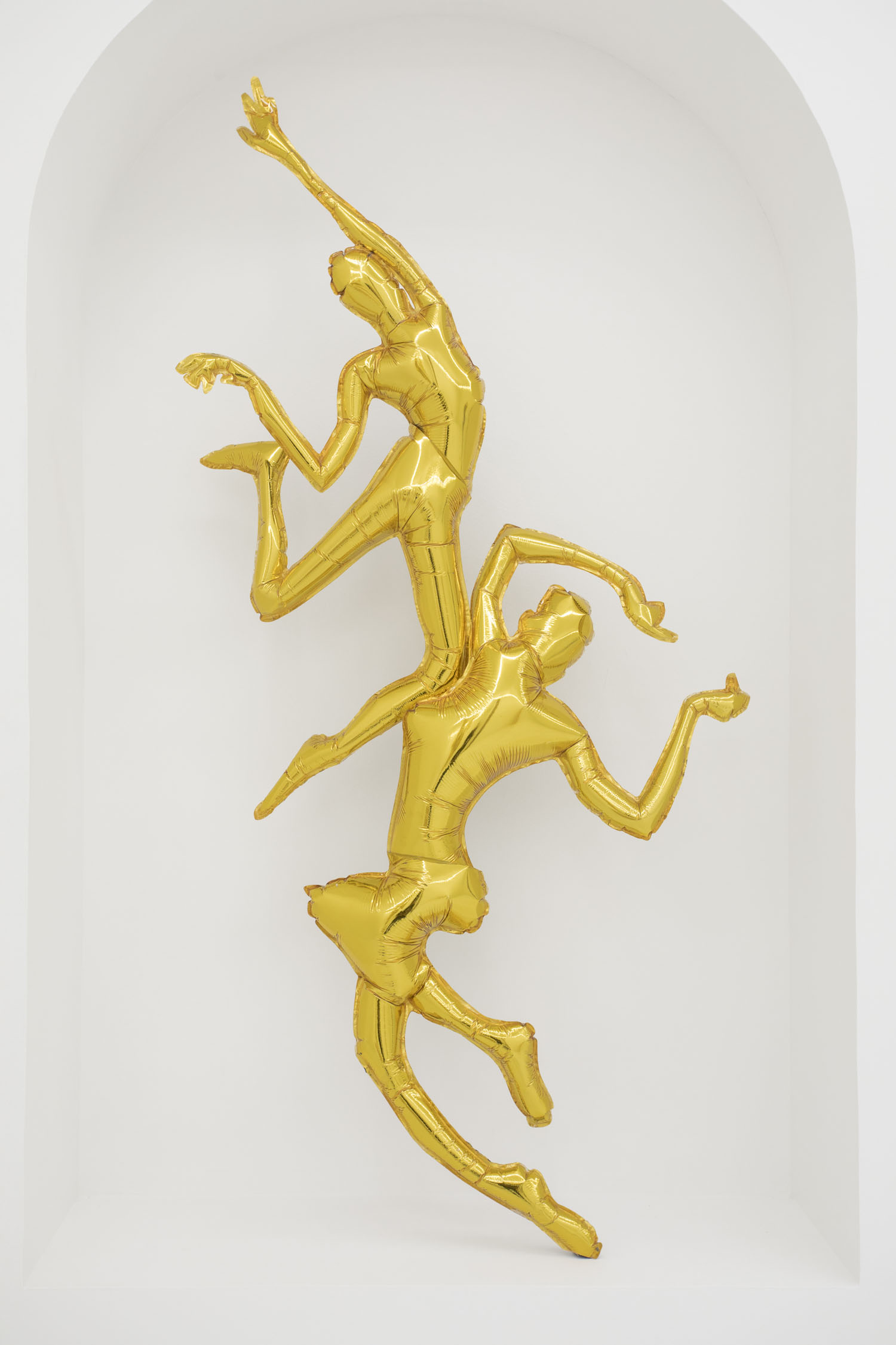The exhibition title is a cheeky six-word paraphrase of The Iliad introducing us both to the classical theme and the conceptual artist’s distinctive sense of humor. Using this ancient text as a thematic structure, Parker Smith explores formal concerns such as gesture and movement through the enigmatic transformation of material. While his first exhibition at The Hole featured store-bought balloons recontextualized, in this exhibition Parker Smith creates his own custom-made balloon shapes by cutting out mylar sheets himself. Lining the material with fiberglass and applying multiple coats of resin, he utilizes a one-way air valve to articulate the form of the sculptures, building them up to create human and vase-like shapes that reference Classical statuary.