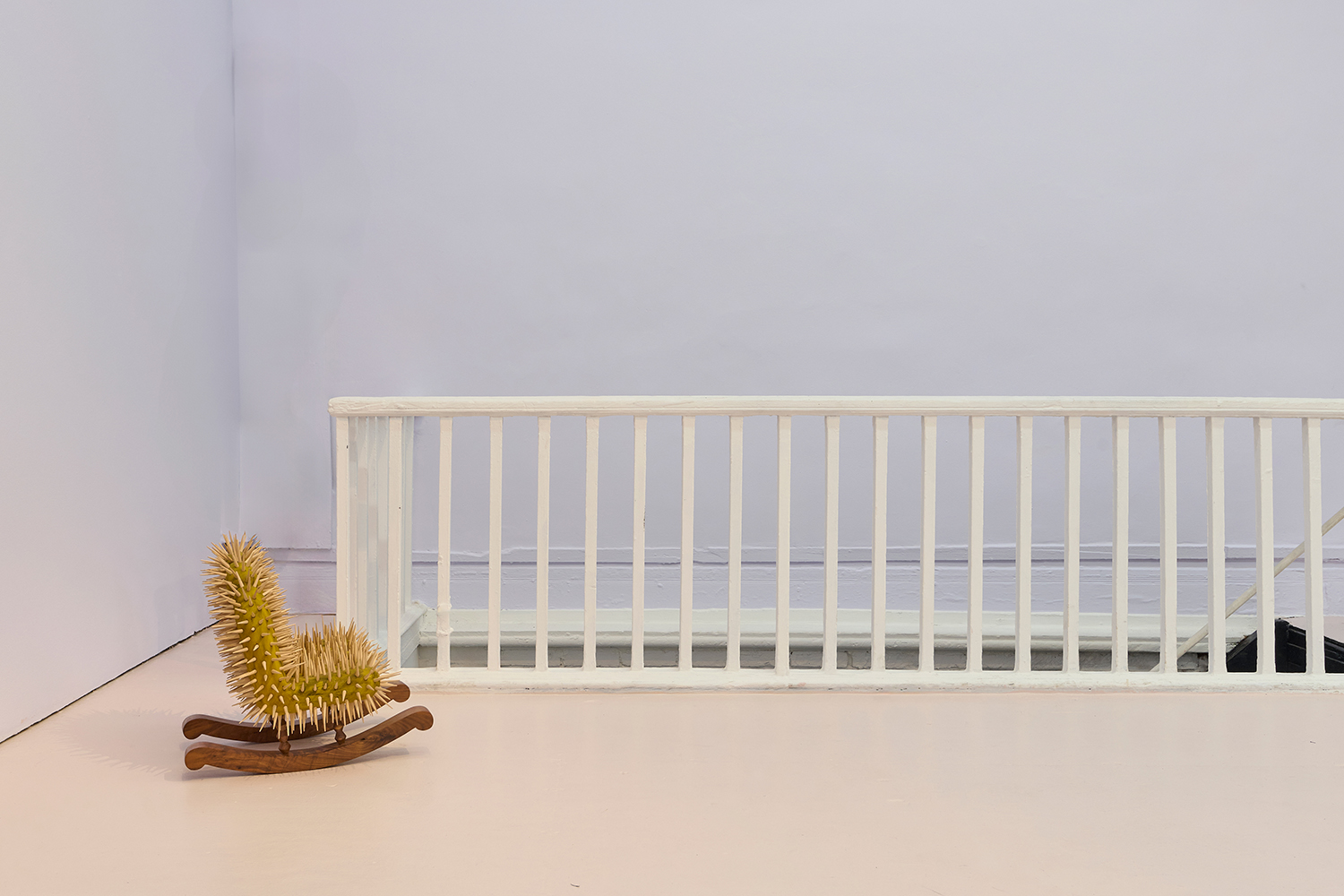 Scale is key in both artists’ new body of work. For Alexis these are the largest canvases he has painted to date, the landscapes sprawling and the horizons unclear, and the wide horizontal paintings wrapping around us in a panorama. De Lara’s scale from towering to tiny functions with familiarity, reflecting how scale becomes lost or at least vague with memory. In the childlike size of the rocking horses Torito and Leticia or the rocking chair The Wait (Again) we feel scales shift with age, how your childhood bed felt huge at one time.