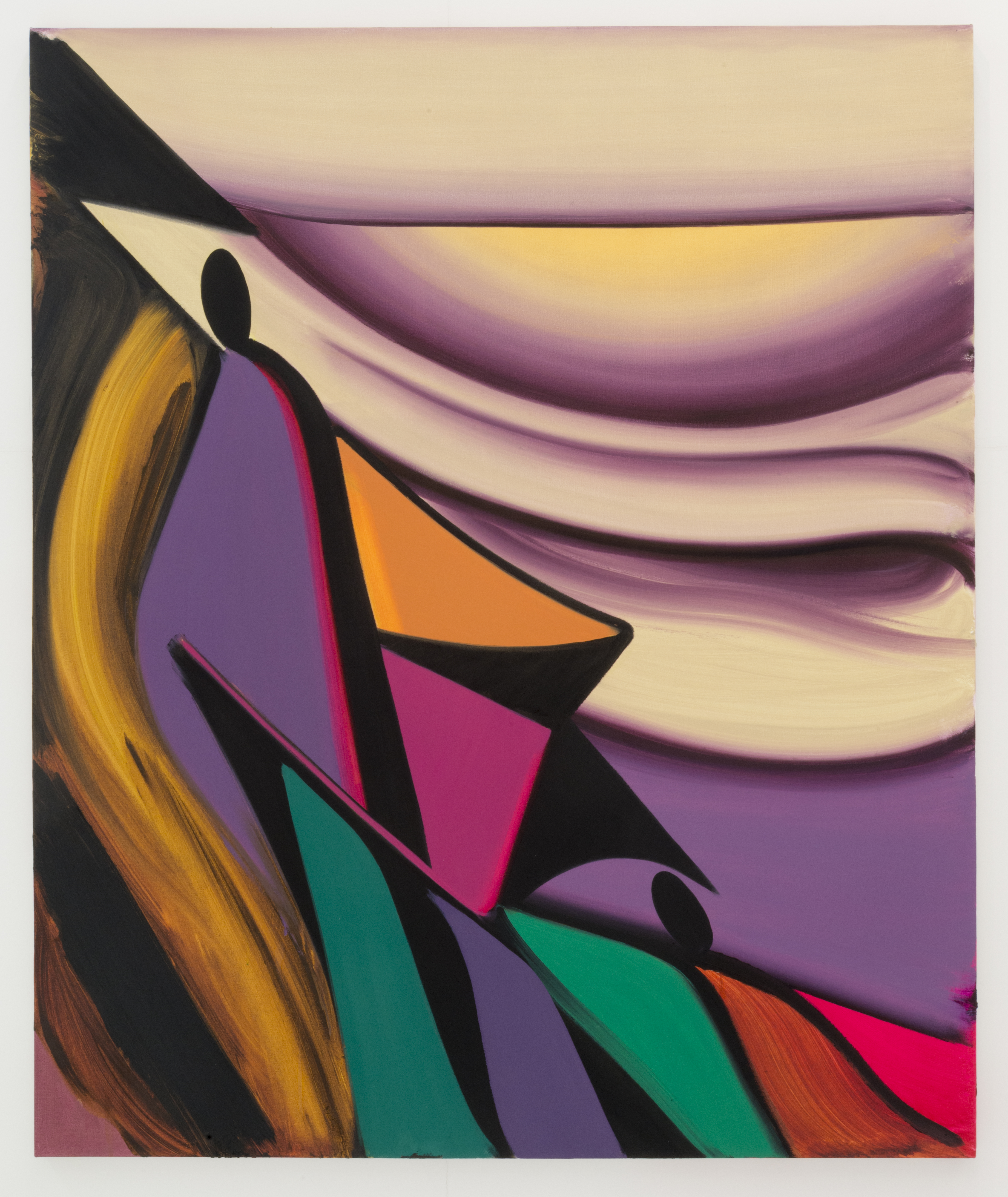 The Hole is proud to announce the second New York solo show by Toronto artist Anders Oinonen. In this exhibition he presents a group of new oil paintings in a variety of scales and personalities, some of them installed in three dimensional plinths that protrude retro-futuristically from the walls. The paintings are colorful and deep, where subtle decisions about brush stroke order and thickness of paint are used to pull faces out of landscapes and make psysiognomies into hills and valleys and cliffs.