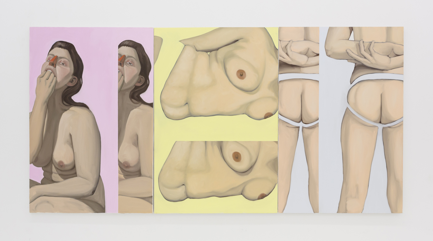 The Hole is proud to present a two-person exhibition by LA-based artist Anja Salonen and Belgrade-based artist Maja Djordjevic entitled “Body Building.” In the show both artists depict the female body with a fresh perspective, loading it up with conflict or tension and building it up with paint.