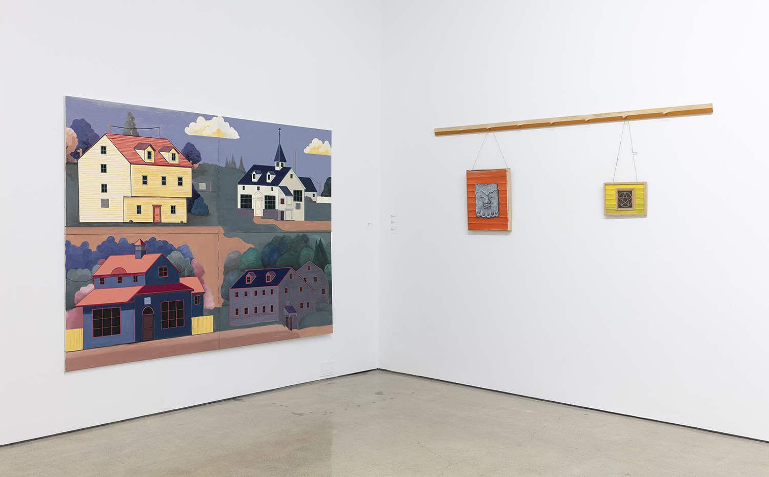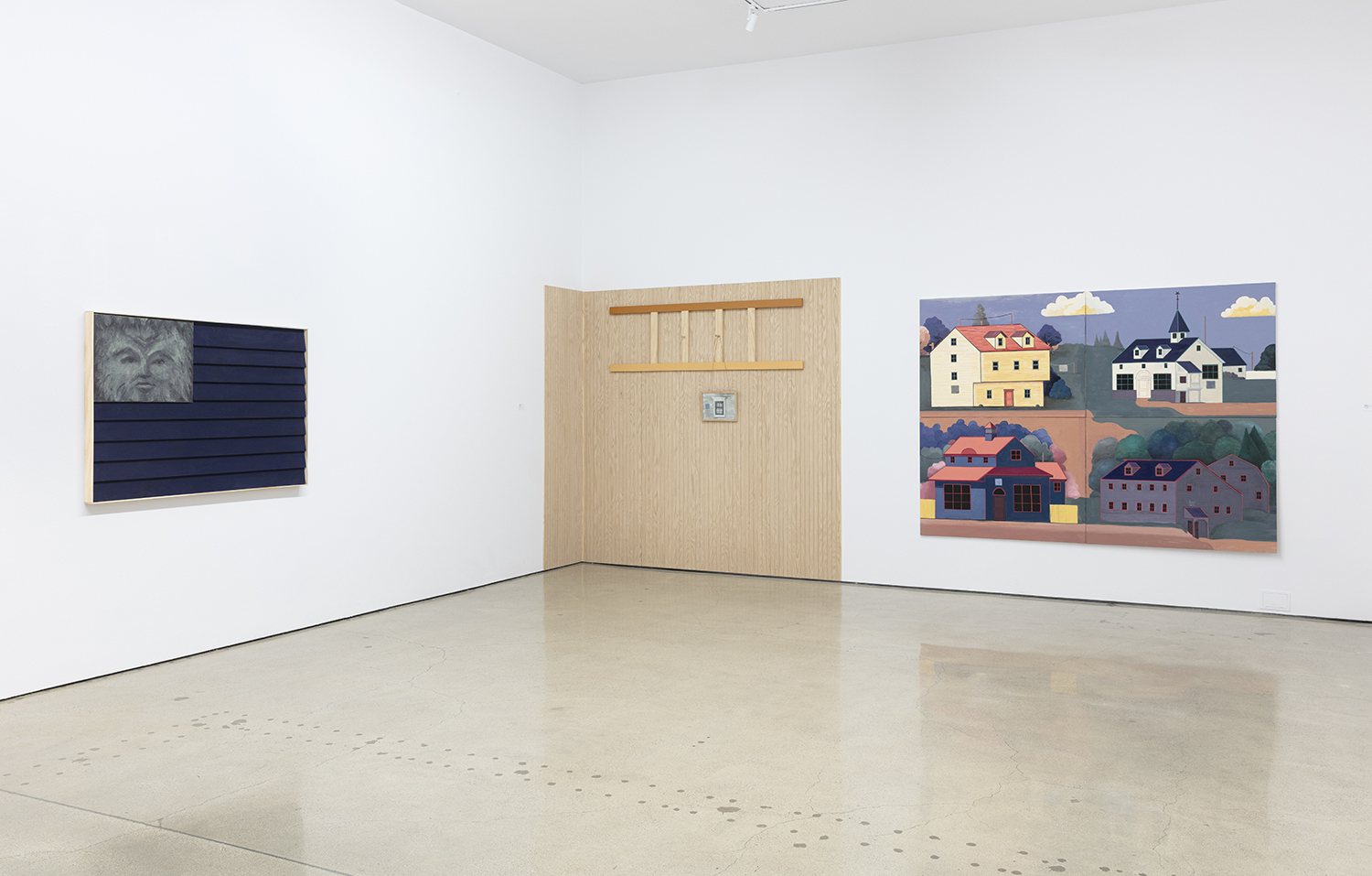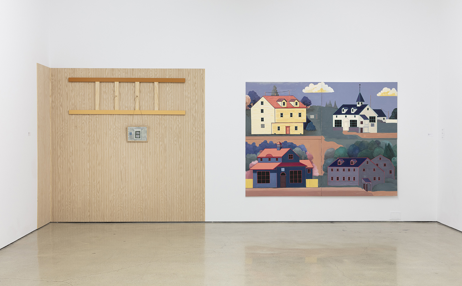 In recent years, Jones has immersed himself in early American regionalist painting, with its distinct compositional logic and historical significance. That research, especially focused on the art and architecture of New England, has gradually shaped both his animation and his fine art practice. This exhibition showcases new paintings and a wood installation inspired by Shaker furniture, drawing from the curious overlap between Western architecture and pagan symbology. It’s a Venn diagram where narrative meets design, and where heritage becomes a speculative tool.