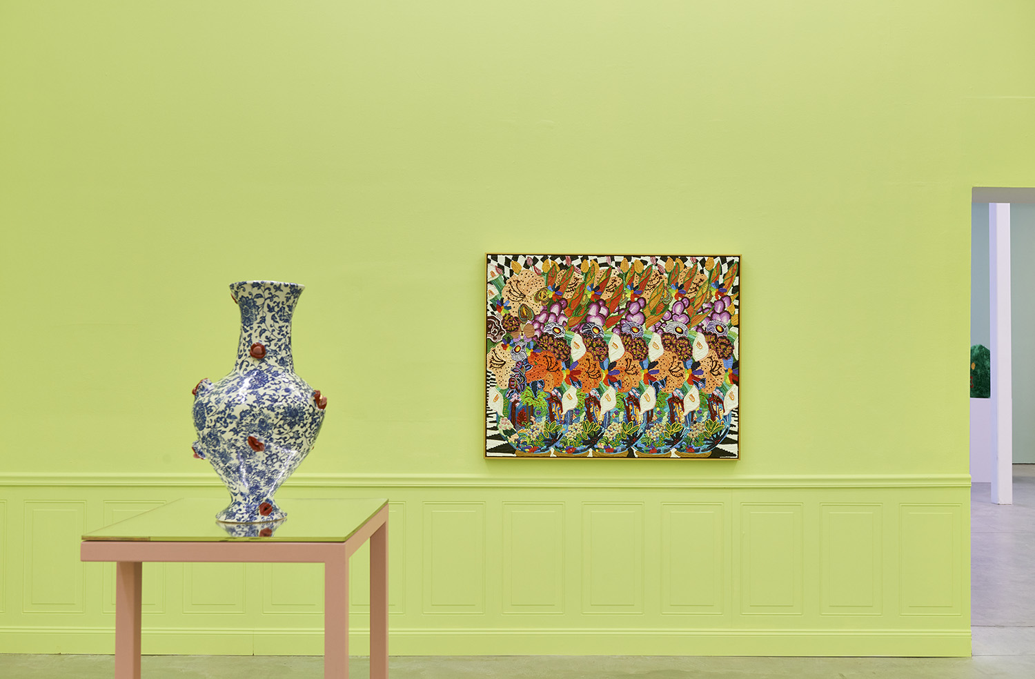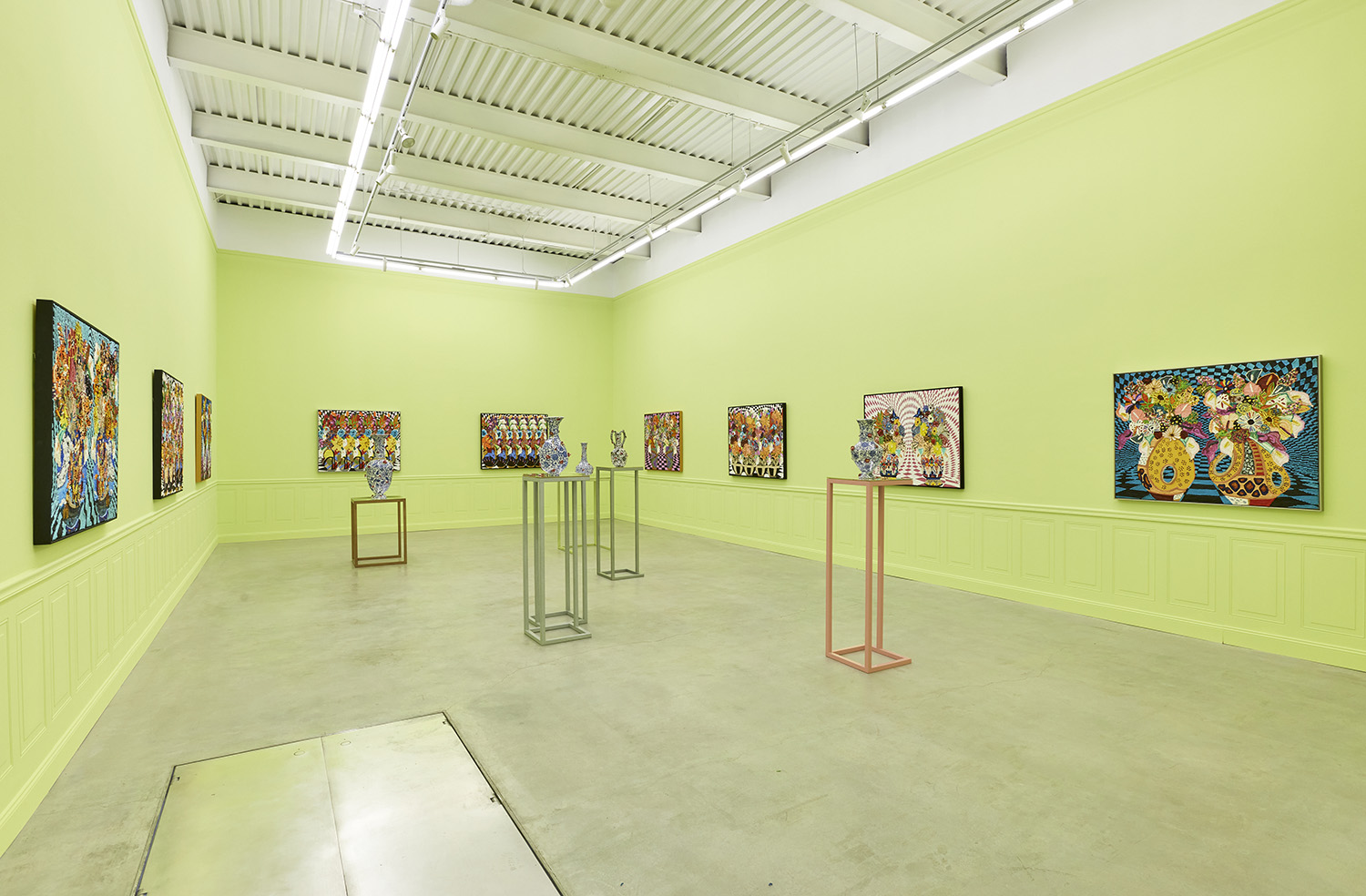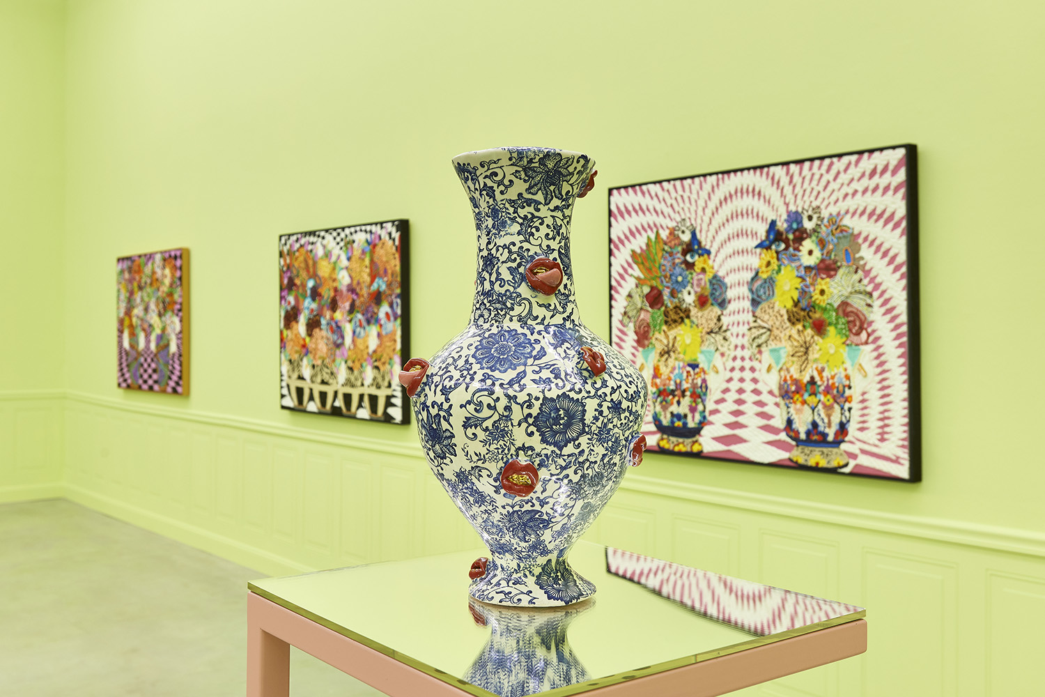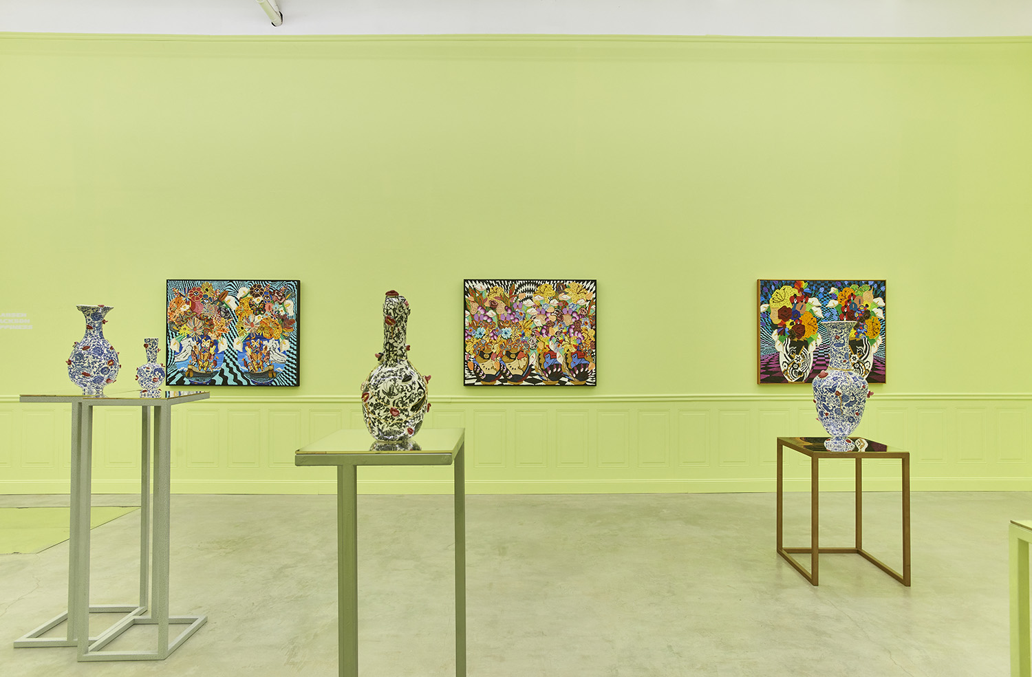 Caroline Larsen, Fleurs Avec Boule Coloniale de la Collection Motifs, 2020, Oil on canvas, 40 x 50 inches, 102 x 127 cm