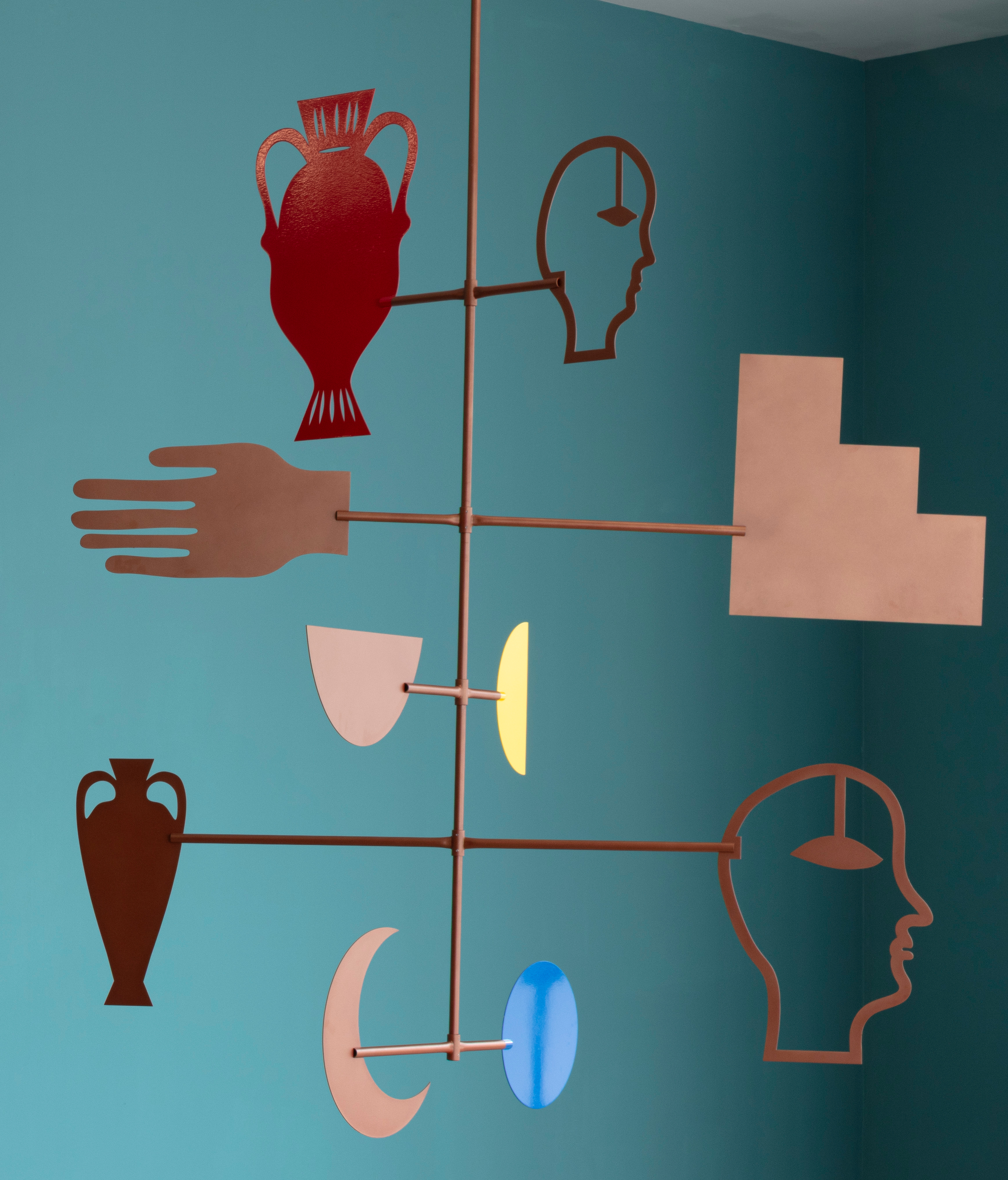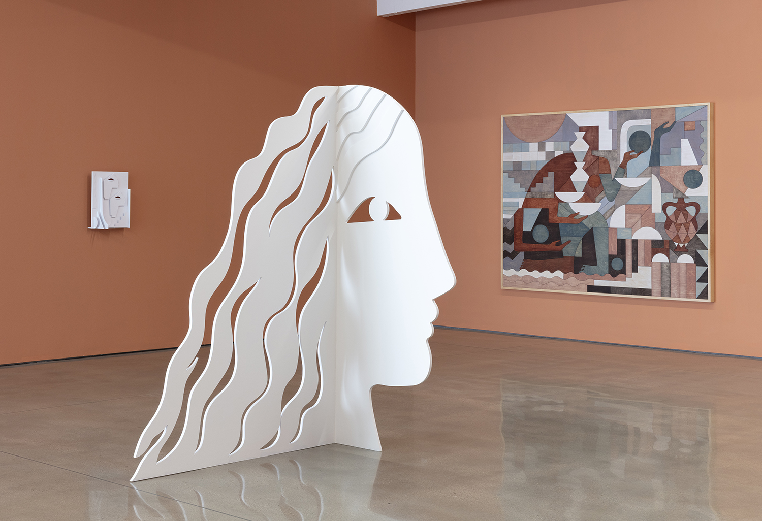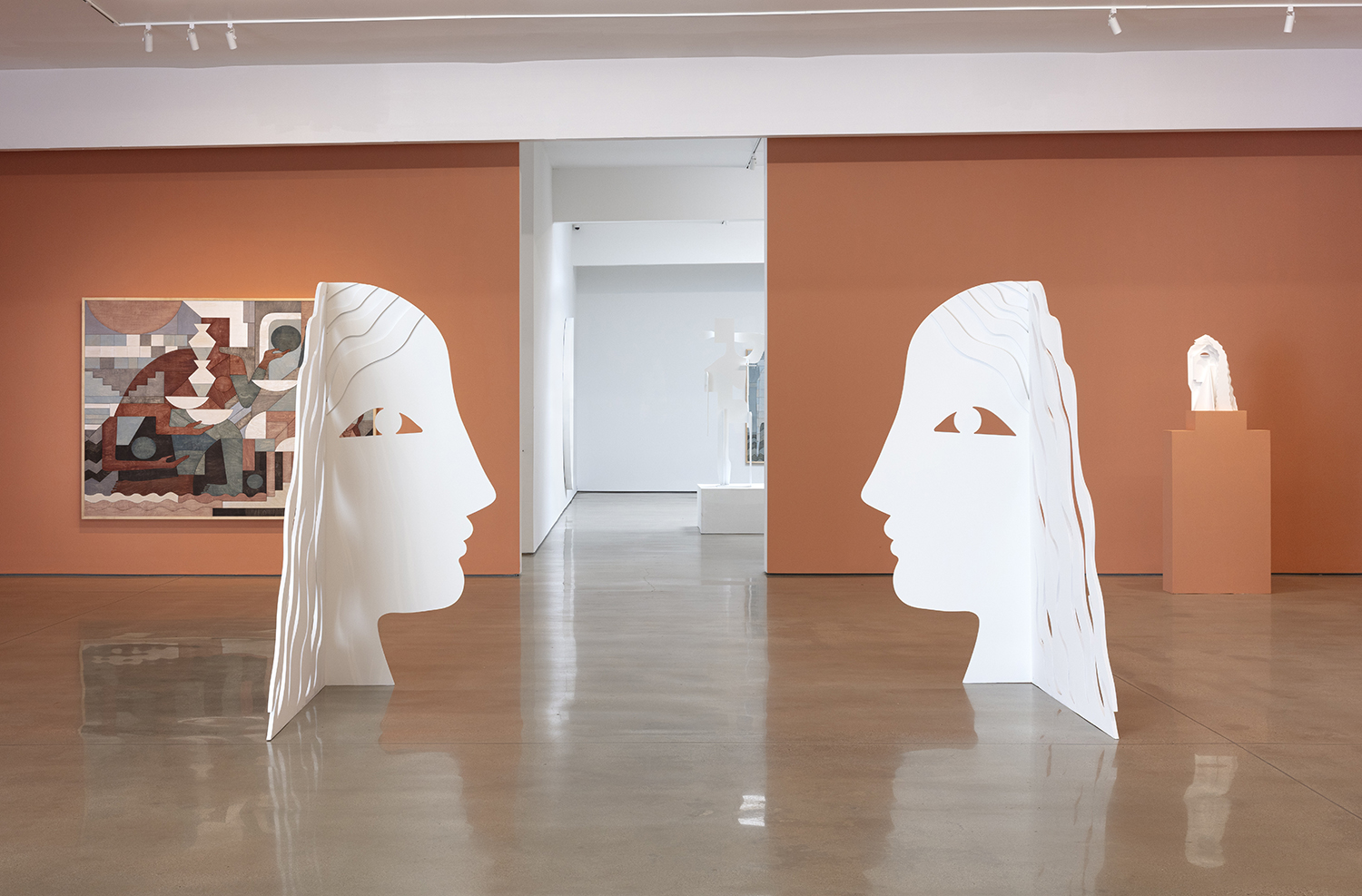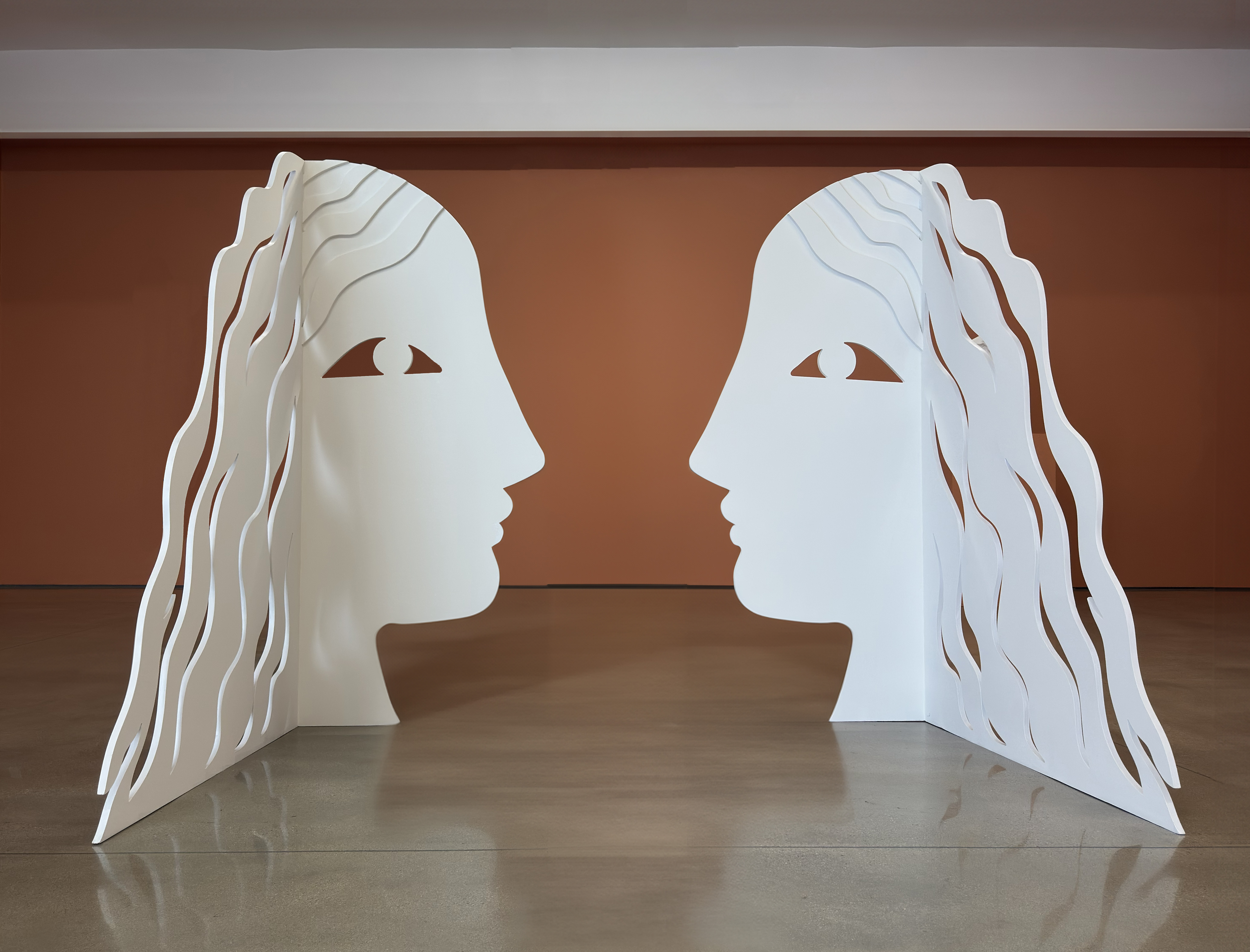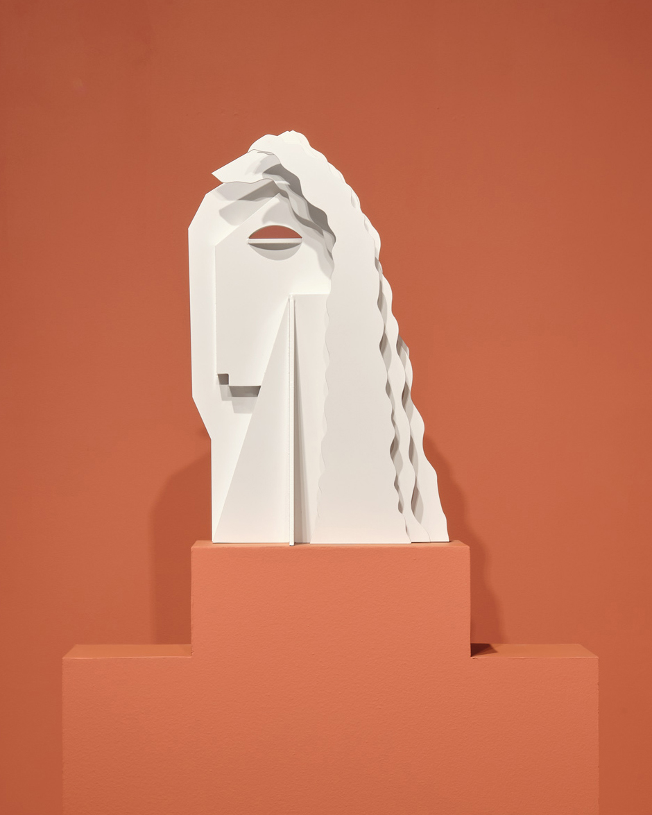 Carolyn Salas, Two Faced, 2021, powder coated aluminum, 20 x 15 x 8 inches,51 x 38 x 20 cm.