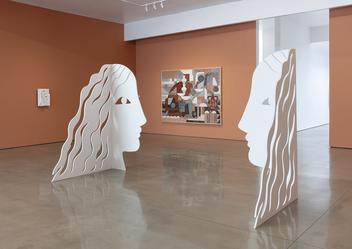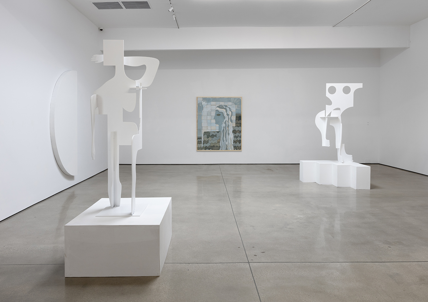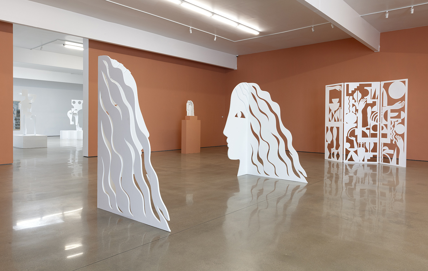 The installation transforms the gallery into a kind of modernist dreamscape. Works shift dramatically as you walk around them—flattened from one angle, activated by shadow the next. Her sculptures change the space, the architecture becomes part of the work’s choreography, and viewers become part of the piece’s unfolding. There’s a powerful vibe to Salas’ work—a word I hate to use but will try to explain. The mood is real: her installations are designed with a deep sense of atmosphere and emotional tone. There’s a designer’s taste and style, but also substance—psychic depth, feminist thought, and an intuitive sense of how materials hold memory and meaning.