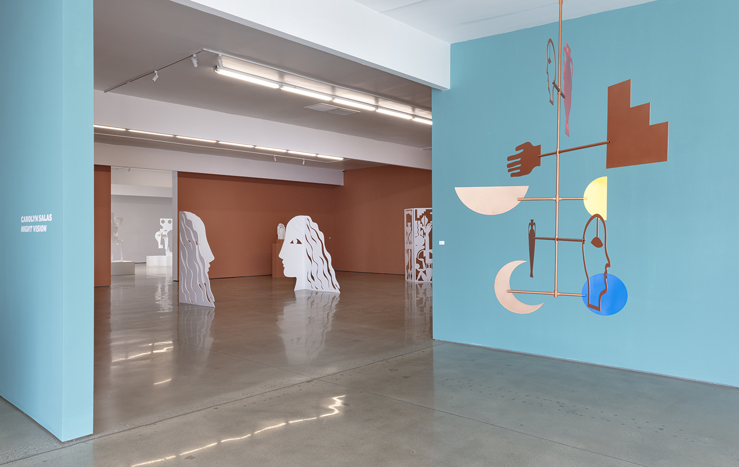The Hole is proud to present Night Vision, our second solo exhibition with Carolyn Salas and her first solo show in Los Angeles—a kind of homecoming for the Hollywood-born artist. The exhibition includes key works from her recent museum show at the NMSU Art Museum in Las Cruces, New Mexico, alongside new stained wood inlay pieces and a site-specific freestanding sculpture for our gallery.