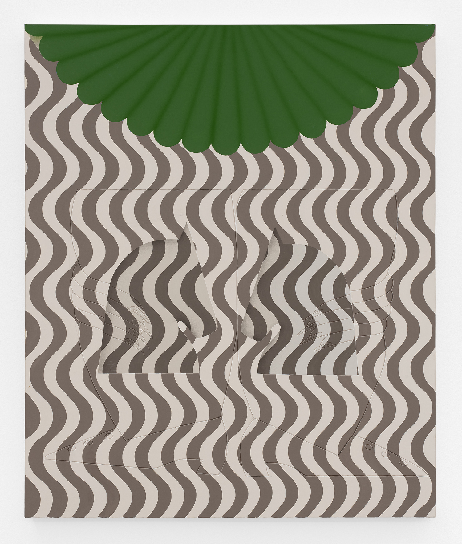 Charline Tyberghein, Hoopla Fades, Questions Linger, 2025, oil on canvas, 47 x 39 inches, 120 x 100 cm.