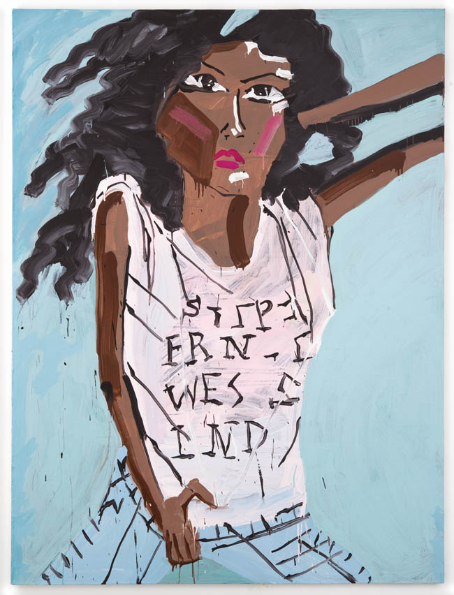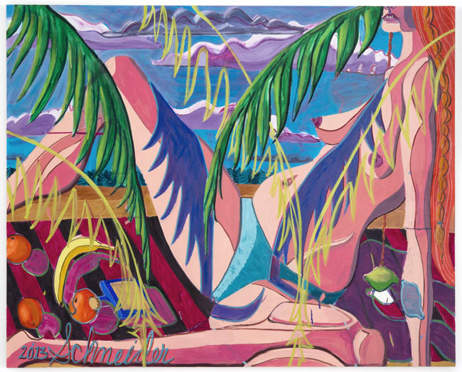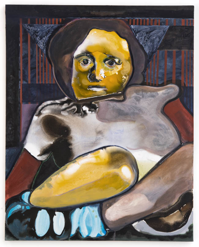 Despite how international the art world has become—not just art fairing, but internetting and institutional exchanging—the show hints at some regional differences in approach. Perhaps we confront the work with the stereotype that European painting is more conceptual or more academic; perhaps American painters are more iconoclastic and irreverent. After all, each region has their own gods in their own pantheons of figuration and certainly different teachers at their academies of higher learning. Daniel Richter guides grad students in Vienna while Cecily Brown and David Salle have consulted those at Yale for example. It would be hard to point out in words just what these regional differences might be, though such distinctions may appear to emerge when experiencing these artworks throughout the same gallery space.