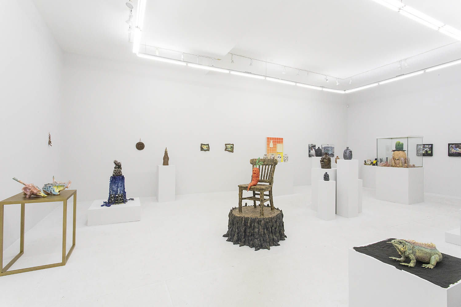 An ancient medium, some of the earliest human art is clay and yet it spent many centuries marginalized as craft. Sometimes, clay is a prep or a model for a more “important” medium like bronze; sometimes, clay is viewed as too functional to be very Fine, somehow separated even from the genre of sculpture. I’m more interested in examples of artists using clay to make something very contemporary and how they go about doing it and why. Many included artists are not formally trained in ceramic and instead discover it because of its ease and tactile satisfaction. While quite a few artists in this show focus almost solely on clay, many others are experimenting on the side of their main work which might be in another medium. There is room for both super skilled ceramic technicians and the self-taught.