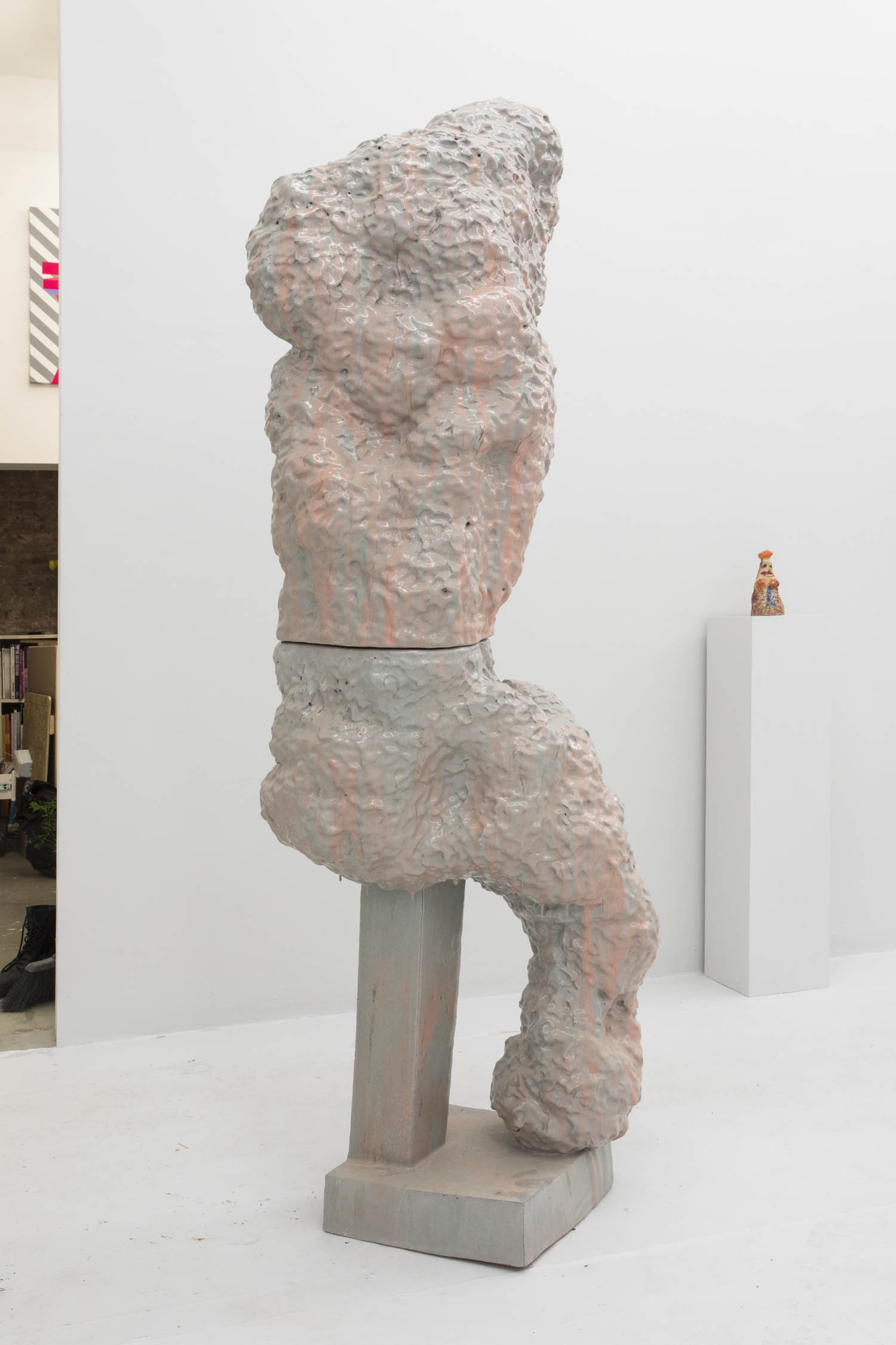 It’s hard to imagine an artwork more opposite to a digital creation than the stalwart and imperfect mounds of Alice Mackler (pictured above). Lumpy and evocative, her figures stand firmly embodied, planted on the lines of invisible exchange. Humorous, idiosyncratic and even elegant in a way, the glazed ceramics could definitely be seen as an antidote to photoshopped idealizations and evanescent digital bodies.