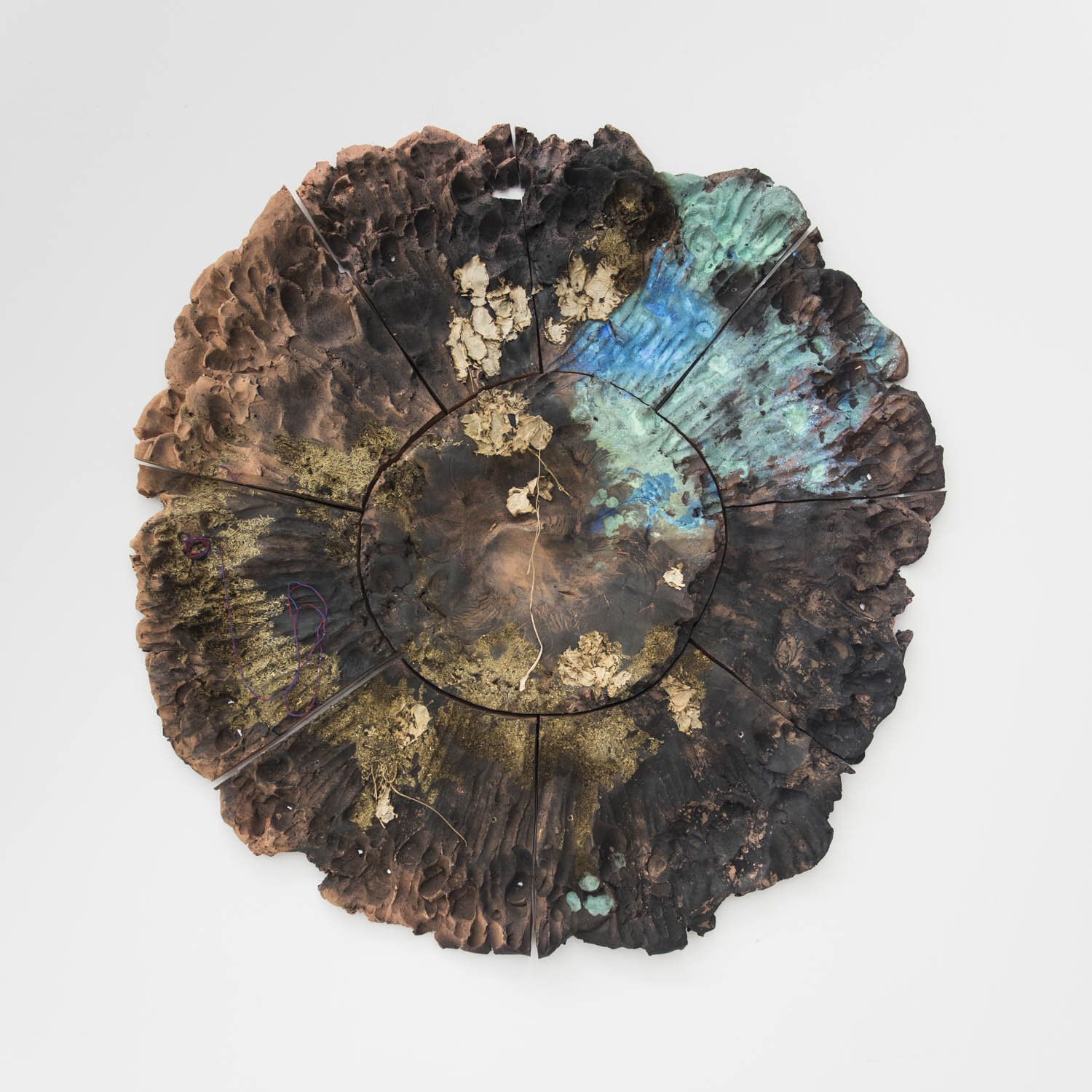 Elemental and embodied earthworks are a commonality here, including the ceremonial-feeling circle by Brie Ruais and the obese and intestinal Zimra Beiner work. Heidi Lau contributes a work evocatively titled “Seventh and Eighth Level of Hell” which looks like long-encrusted crab traps and dredged-up shipwreck. Shinichi Sawada exhibits two works that seem to be from a different millennium altogether – this Japanese artist presents intensely inventive, almost prehistoric looking ceramic. Valerie Hegarty has taken shipwreck debris very literally in the past, but here shows two ceramic landscape paintings in ornate frames distorted by time and memory.