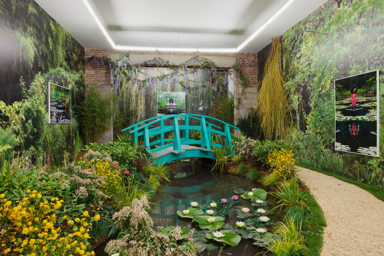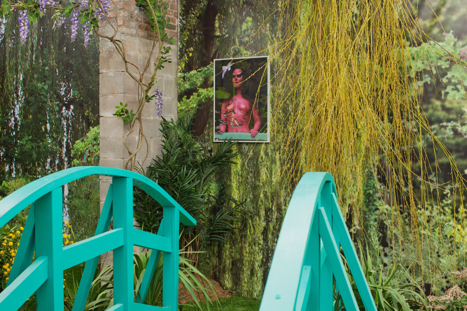 Playboy.com has generously funded this massive exhibition, for the duration of which the Hole will be transformed into a living, breathing garden—with a lily-padded pond traversed by Monet’s signature green Japanese arched bridge, and scattered with the indigenous plants he is famous for painting. The walls of the exhibition will be printed with the almost claustrophobically green willow trees that surround this historic French site, and your first step into the gallery will be onto grass.