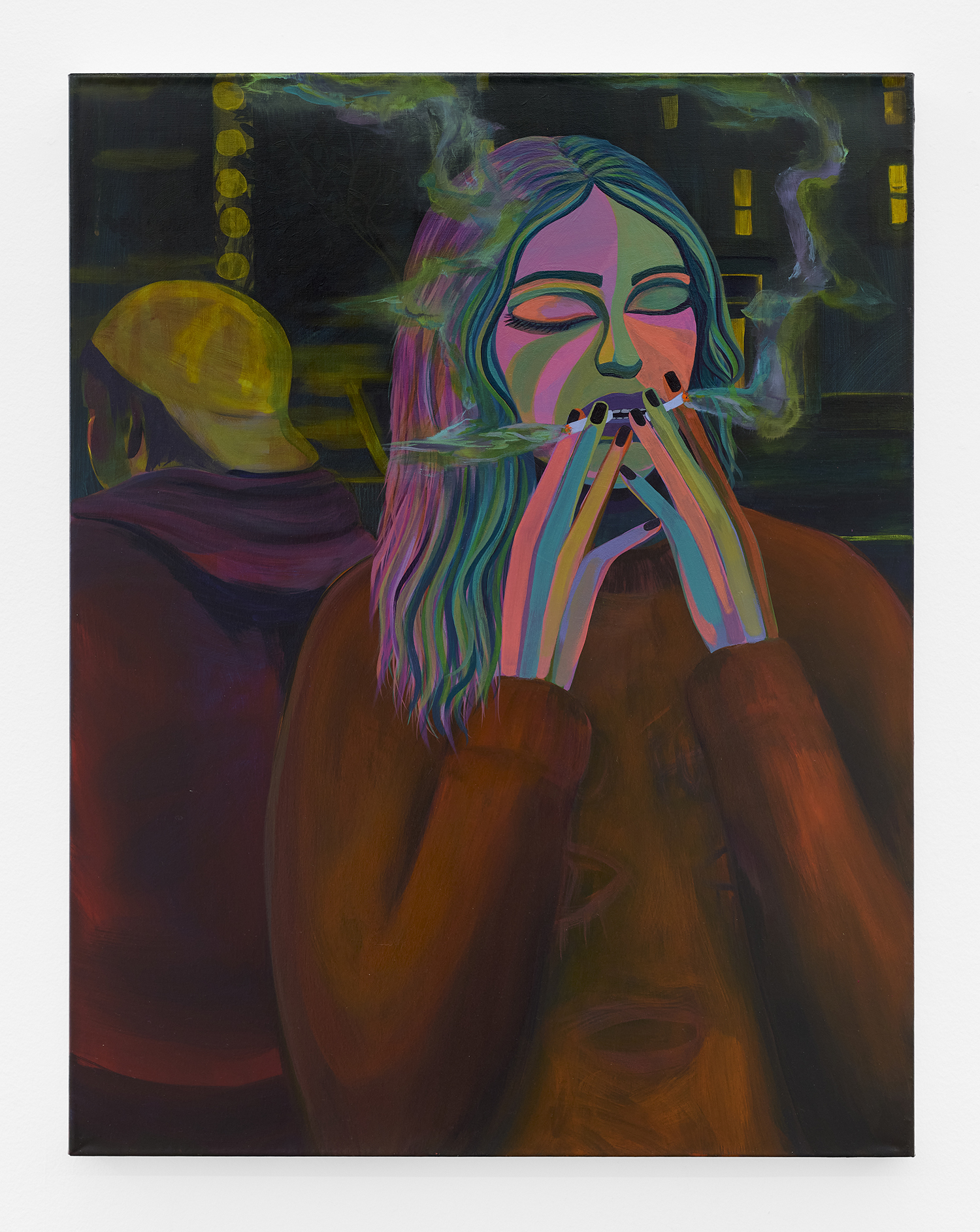Danielle Roberts, Burning At Both Ends, 2023, acrylic on canvas, 32 x 25 inches, 81.3 x 63.5 cm.