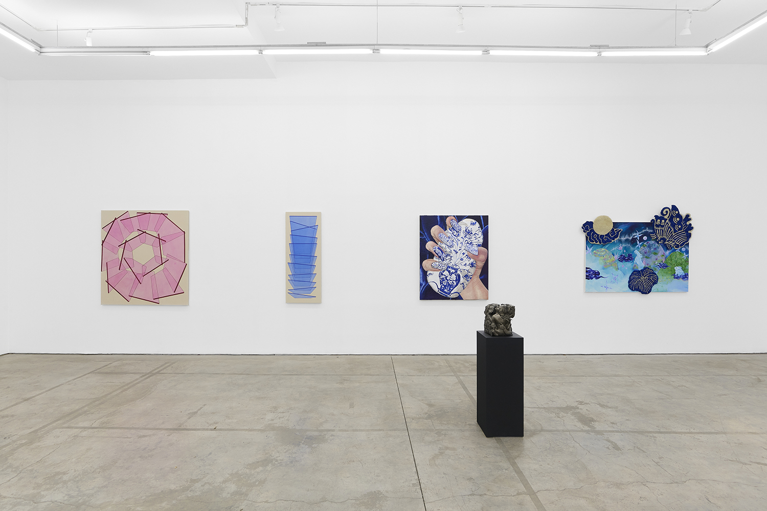 Flirting with nostalgia, Echo Chamber presents work that feels as much about the artist’s identity as it does about the legacy they engage with, examining the difference between derivative work and meaningful dialogue with the past. In Maya Dunn’s "Heirlooms" we see the artist’s Kamon (Japanese family crest) depicted in acrylic and tufted components, the work exploring how traditions and heritage fade, her work not just inspired by history but preserving it with a contemporary reimagining.
