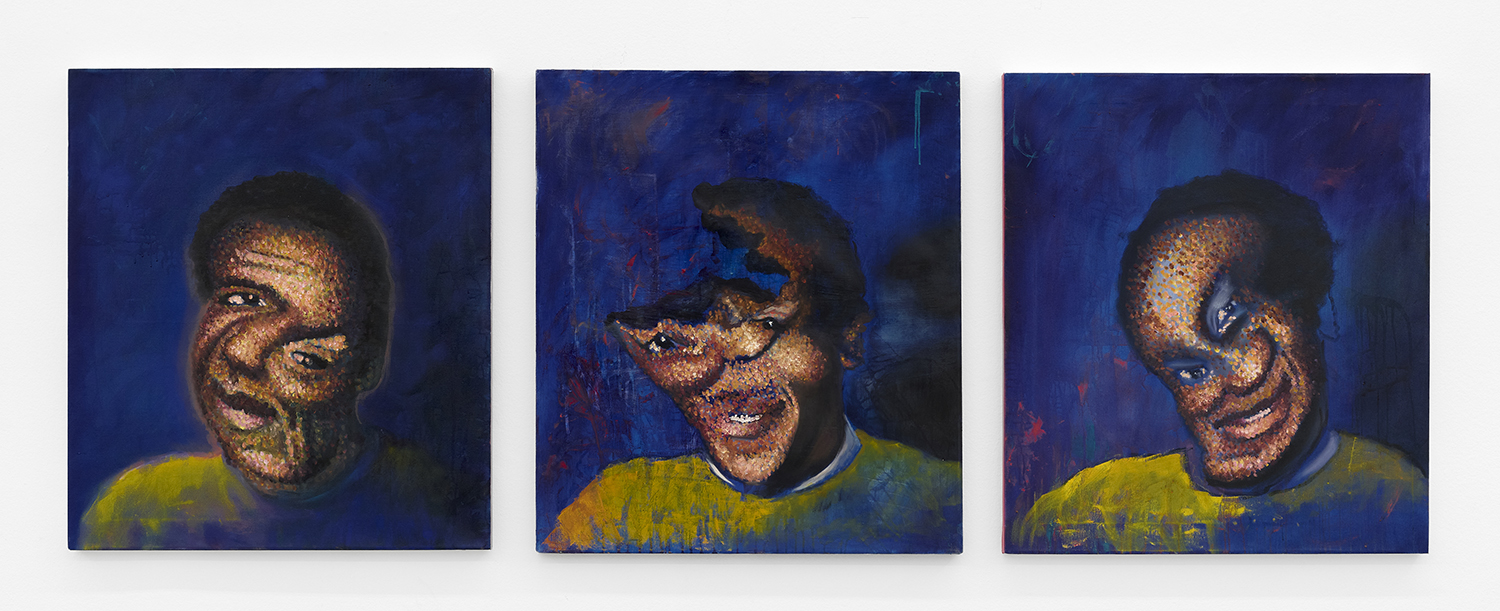 Kamoy Smalling, Portrait of a Man (Triptych), 2024, oil on canvas, 34 x 30 inches each (34 x 90 inches total), 86 x 76 cm. (86 x 228 cm. total)