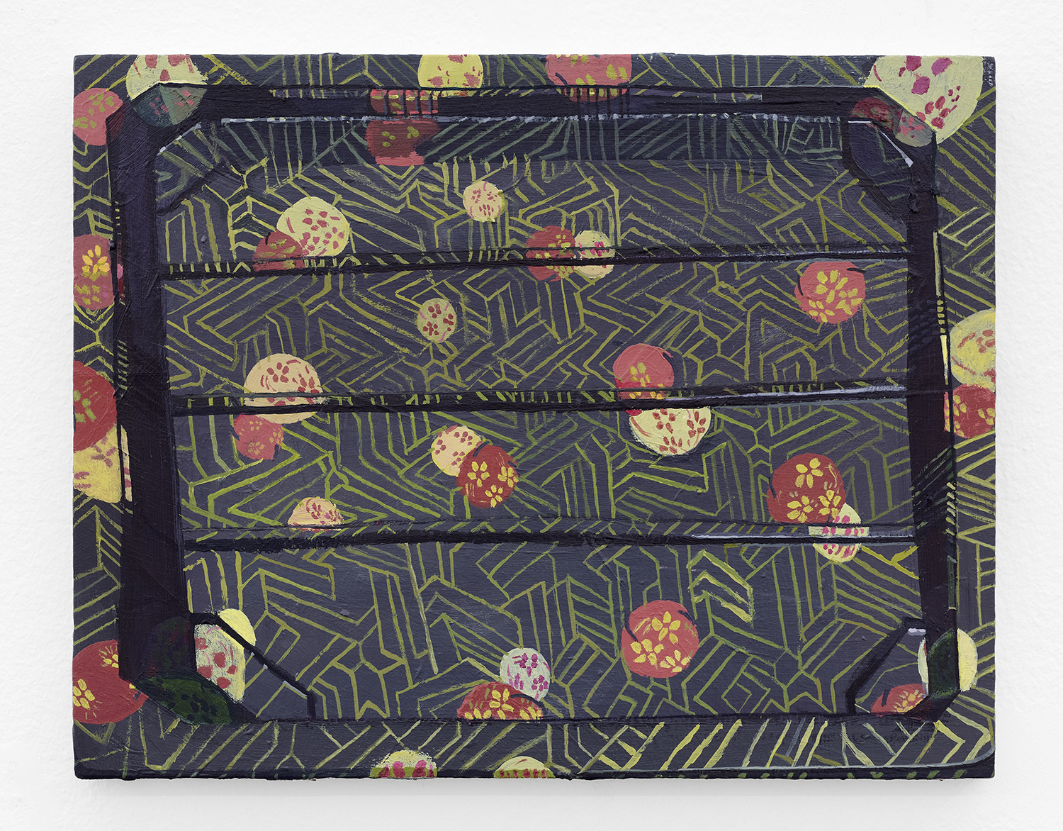 Jared Friedman, To-Go (Pine Needles), 2024, acrylic and wax pastel on canvas, 28 x 26 inches, 71 x 66 cm.