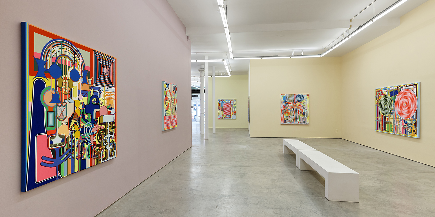 Over Here is the second solo show at the Hole of paintings by Eric Shaw. Eleven scintillating new canvases will dazzle your eyes and scramble your brains as this digital-era abstract painter levels up.