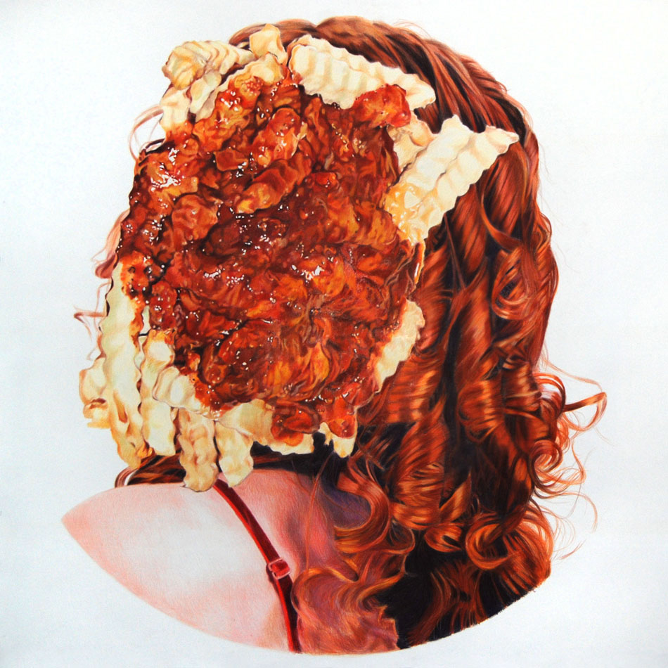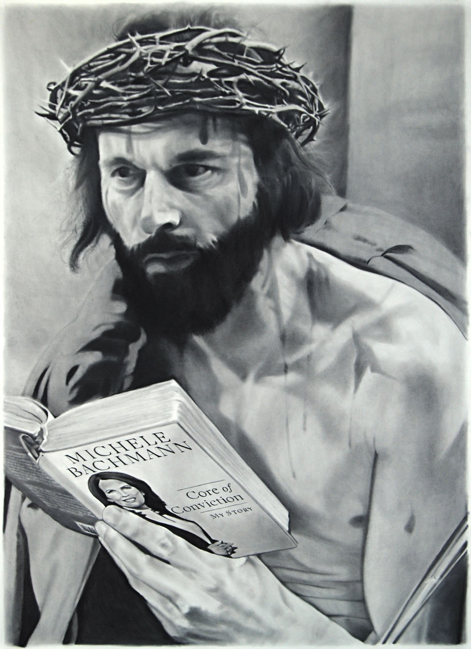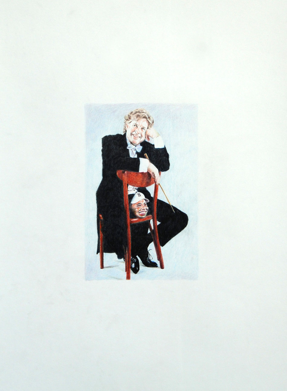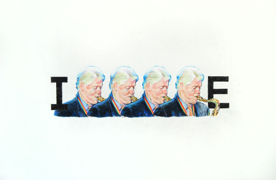 Yahnker is a virtuosically talented drawer who choses to take densely layered political commentary as his subject matter. The often large-scale pieces are visually seductive and can easily be appreciated at the purely superficial level, but after ingesting the title and contemplating the image for a bit, many more upsetting and controversial ideas begin to emerge. The works are elaborately planned and constructed to hold up to even the most intense conceptual scrutiny. There is a wealth of information and excitement to be had the more you meditate on each work.