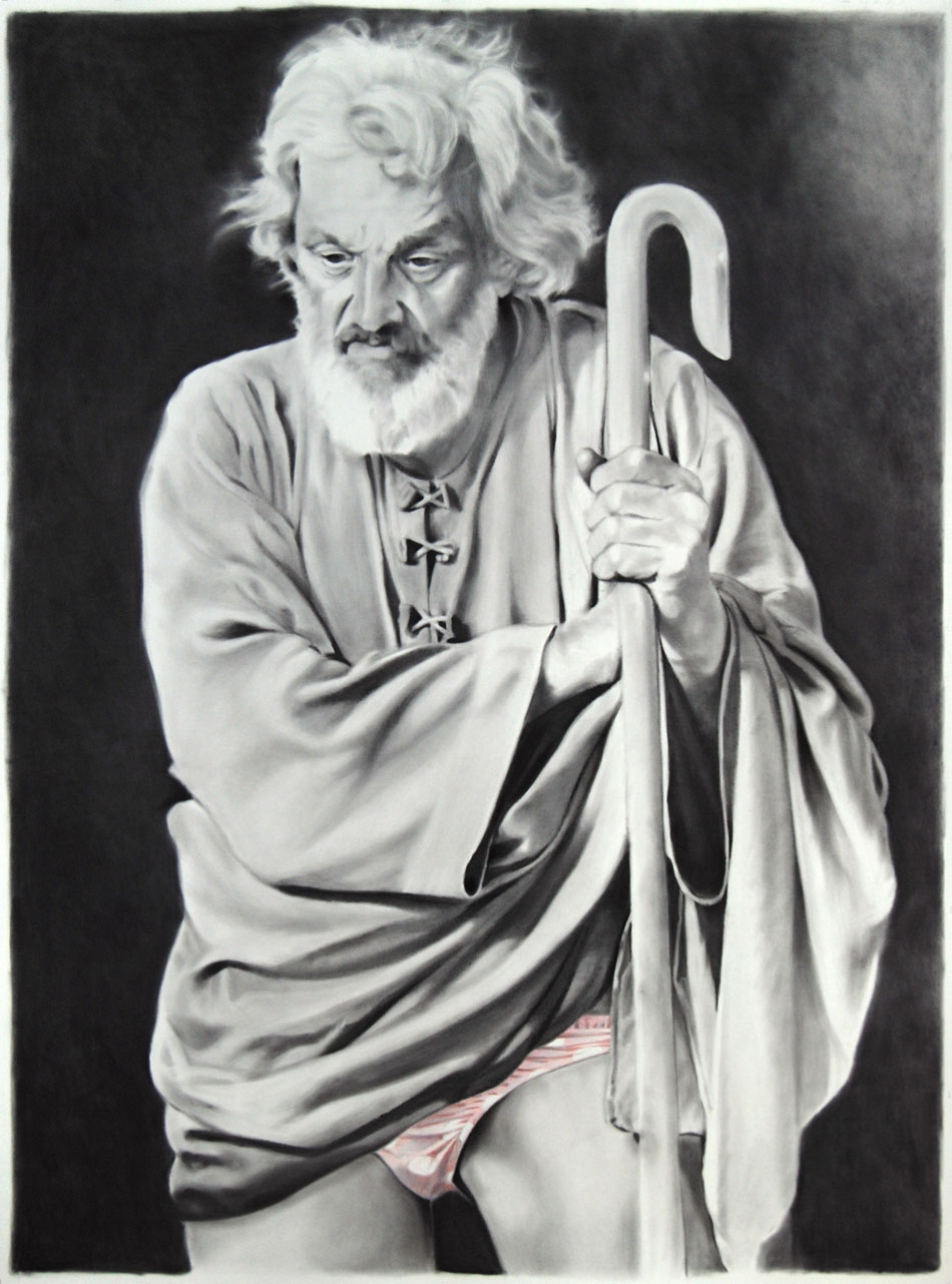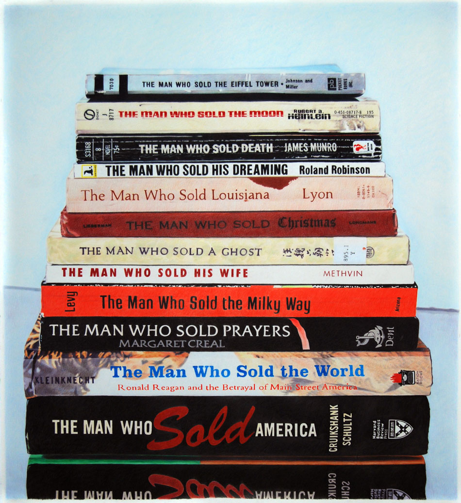 “Drawing is truth. There really are no tricks. It’s just you and the sharp end of a stick playin’ the dozens.” Eric describes his approach as the straight man in a slapstick comedy, and nothing is funnier than a dramatic actor delivering absurd lines as if his life depended on it. He sees his works as living, breathing comic panels, visual poetry or glorified political cartoons. Many works pun on the semantic difference between similar words, or the linguistic difference between similar images, and occasionally both. His show is stand up comedy done by hand.