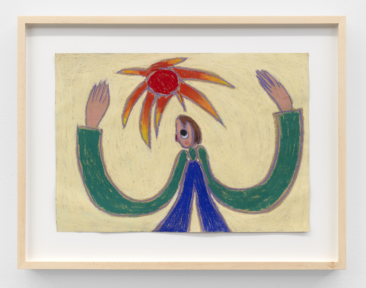 Embrace the Sun, 2023, Soft pastel on paper in maple frame, paper dimensions: 11.7 x 16.5 inches, 30 x 42 cm. framed dimensions 16.5 x 1.5 x 21 inches, 42 x 4 x 53 cm.