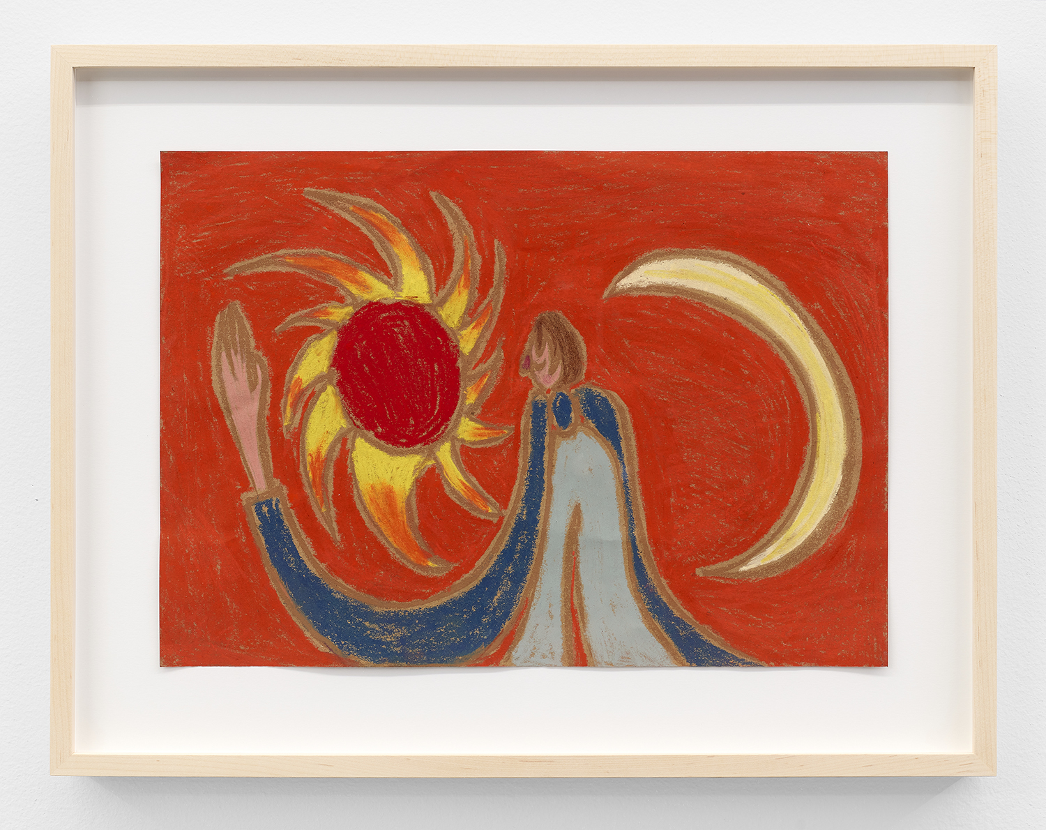 Sun and Moon, 2023, Soft pastel on paper in maple frame, paper dimensions: 11.7 x 16.5 inches, 30 x 42 cm. framed dimensions 16.5 x 1.5 x 21 inches, 42 x 4 x 53 cm.