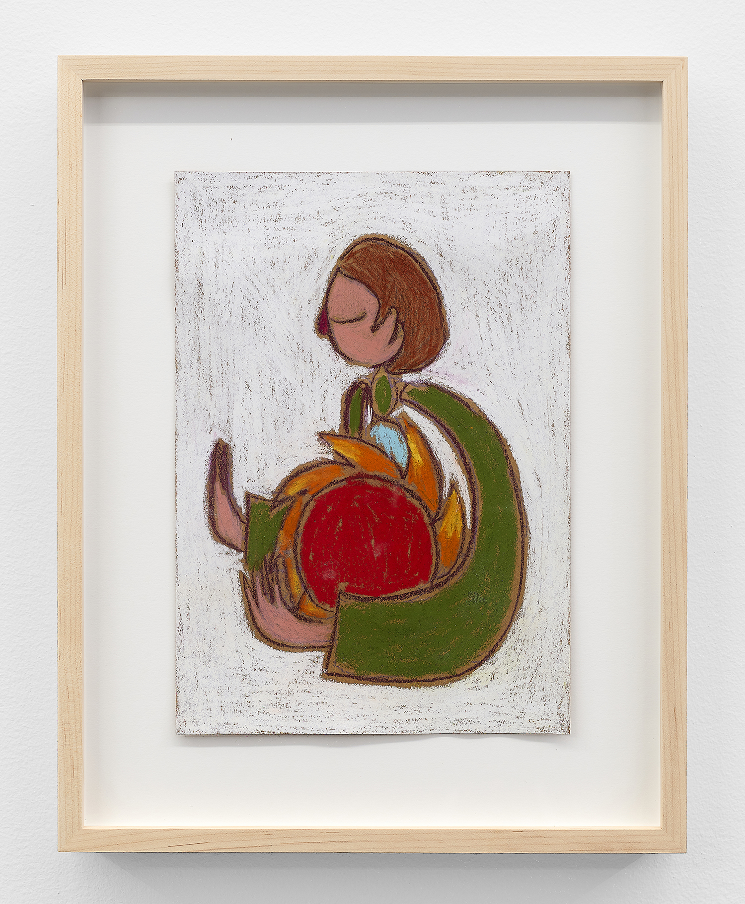 Green Shirt, 2023, Soft pastel on paper in maple frame, paper dimensions 11.7 x 16.5 inches, 30 x 42 cm. framed dimensions 16.5 x 1.5 x 21 in, 42 x 4 x 53 cm.