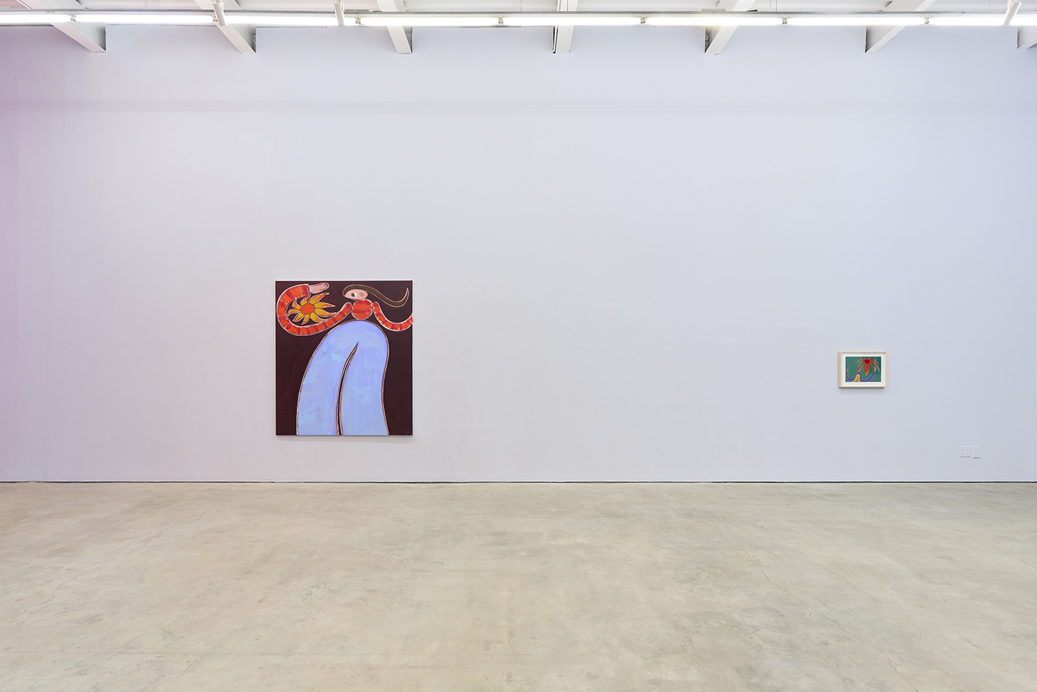 Where Treadwell’s previous exhibition had the subdued tone of soothing quietness, the new imagery is underlined with enthusiasm and rejoicing, radiating with affirmative energy and positivity. Still holding onto the melancholic undertone, the bubbly presence of the figures conveys a hopeful, uplifting, sometimes loud atmosphere. Zooming out of his most recognized body of work through a prism of an adolescent with more profound life experiences and expectations, the much more accessible visuals are painted using slightly restricted yet bold language. The smartening-up is backed by love and trust in this particular body of work and a new way of looking at and considering them both emotionally and technically.
