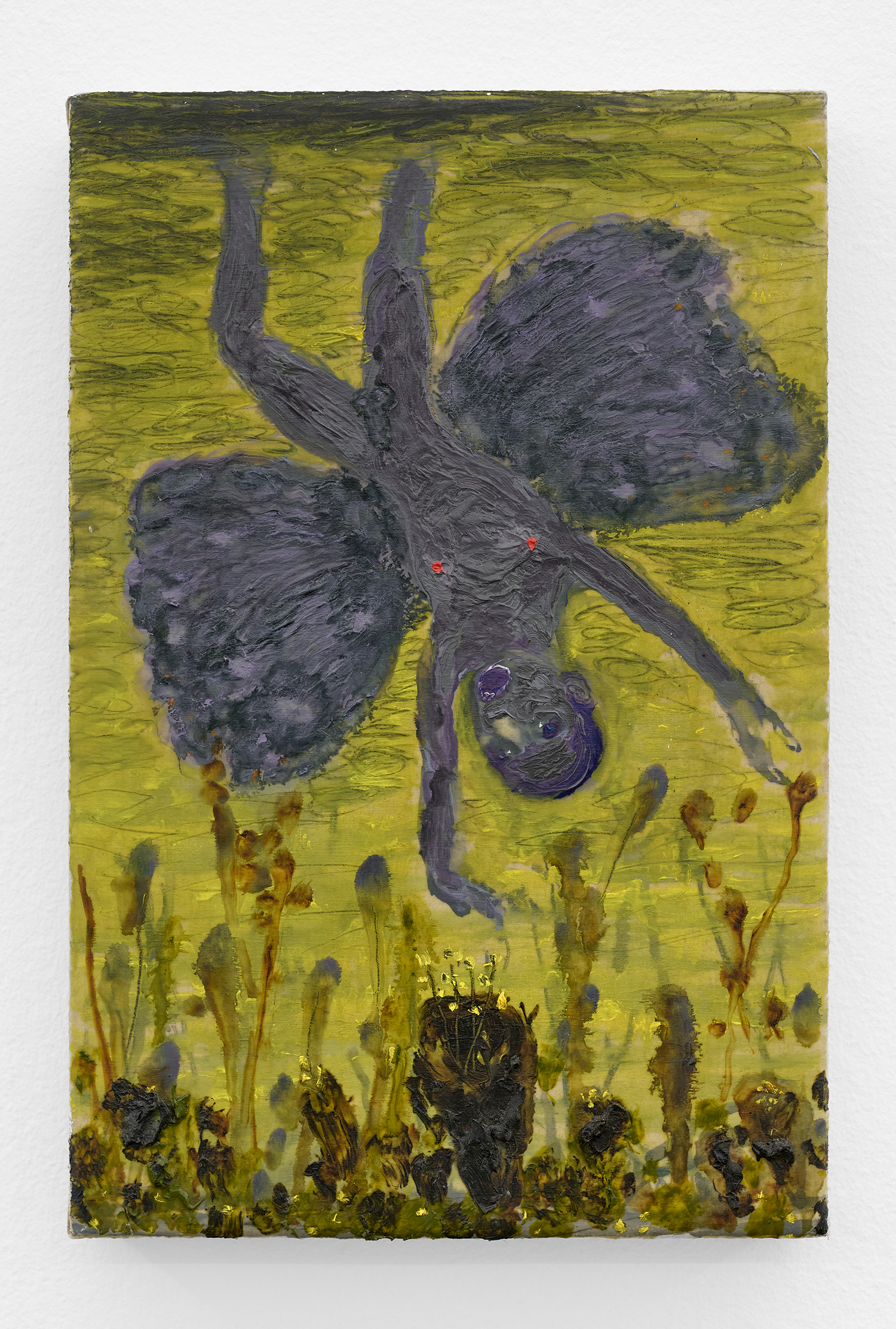 Grgur Akrap, The One Who Falls, 2025, oil and wax on canvas, 16 x 10 inches, 40 x 26 cm.