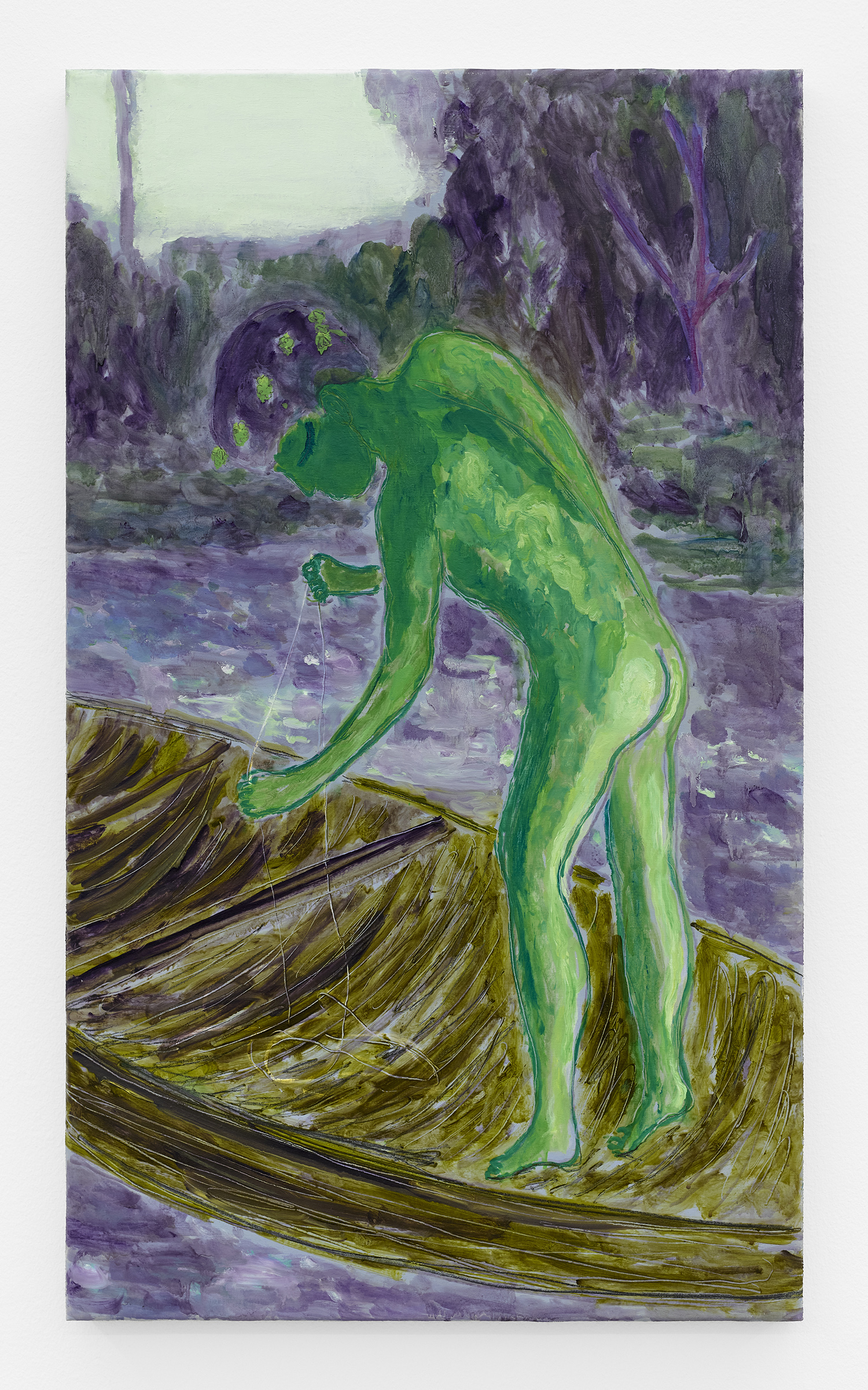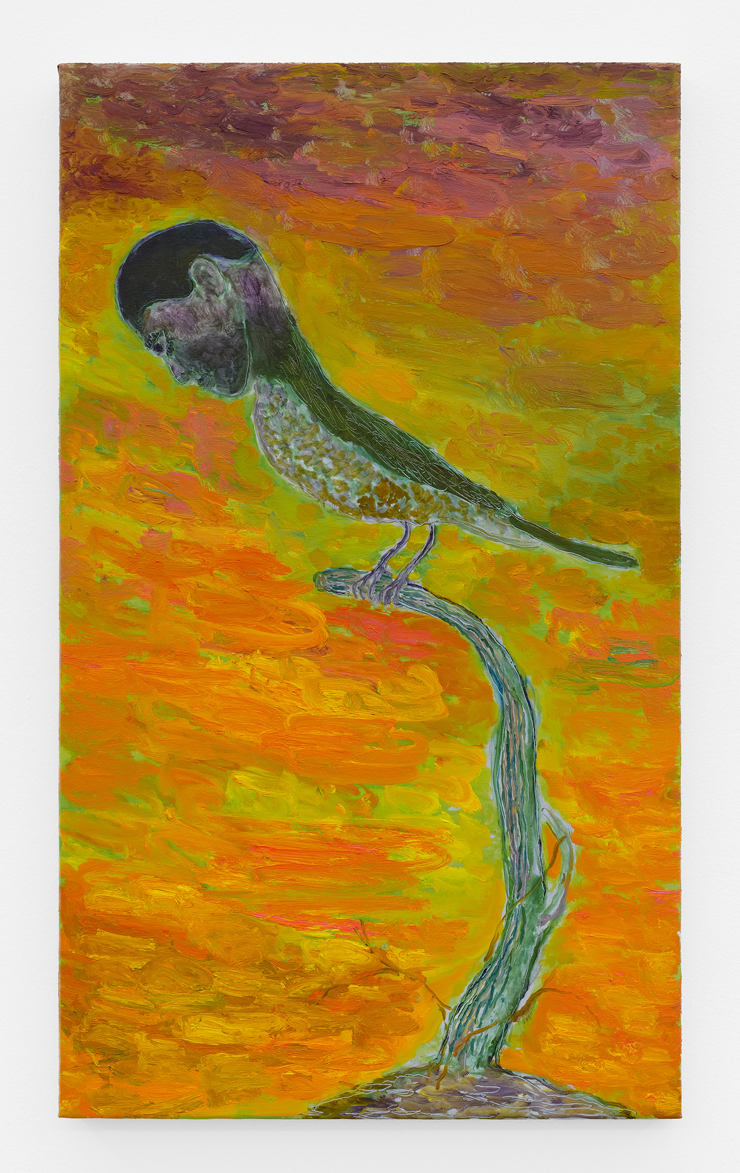 Grgur Akrap, Birdwatcher, 2025, oil and wax on canvas, 43 x 25 inches, 110 x 65 cm.
