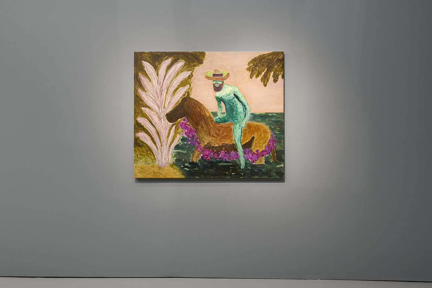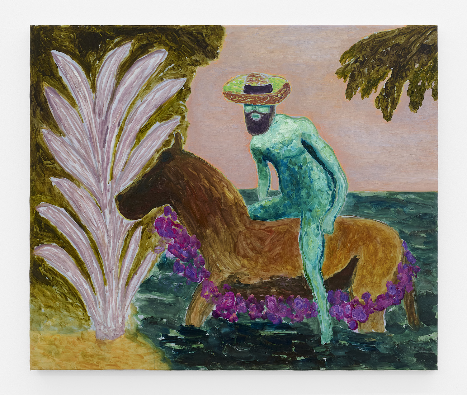 Grgur Akrap, Turquoise Horseman, 2025, oil and wax on canvas, 43 x 51 inches, 110 x 130 cm.