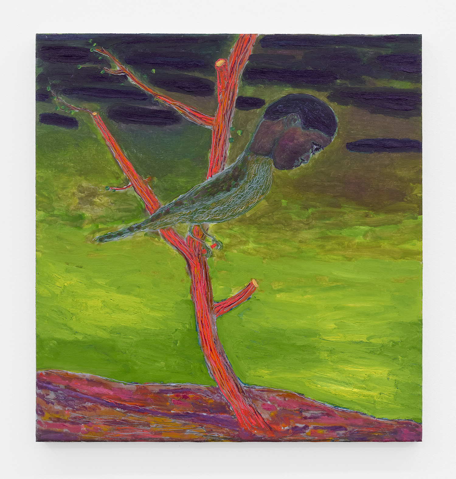 Grgur Akrap, Birdwatcher II, 2025, oil and wax on canvas, 37 x 35 inches, 93 x 88 cm.