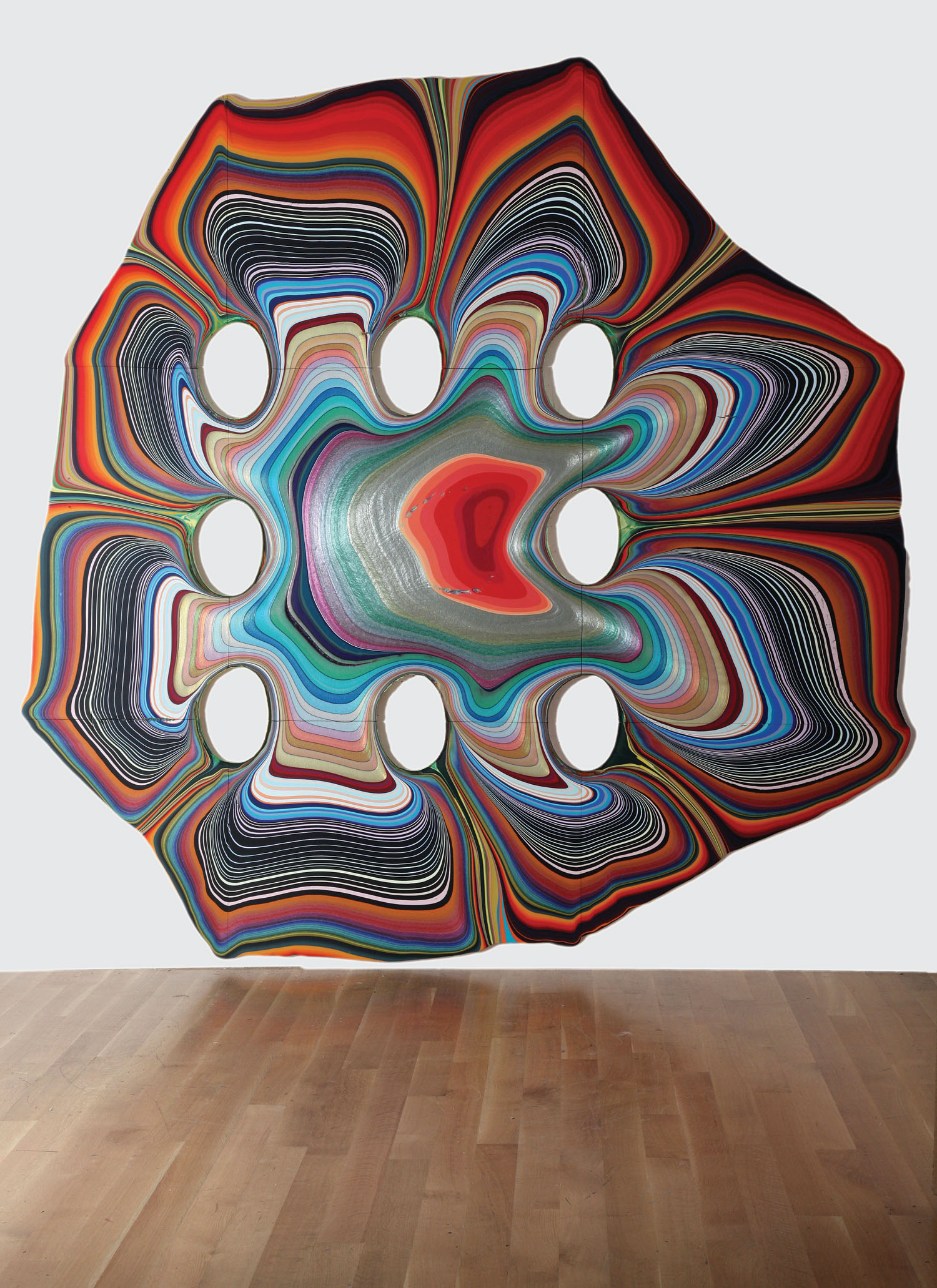 Rower was born in the psychedelic 60s and grew up working in his father’s construction business, where he learned about heft and weight and managing teams of people to do massive undertakings. The grandson of Alexander Calder, Rower was surrounded by a culture of art making and the influence of amazing cultural figures. He has been developing and perfecting these pours in seclusion over the past five years. Recent shows at Pace last summer, John McWhinnie in New York and forthcoming projects at Shirazu in London are just the beginning of sharing these important works with a broader audience. A catalogue will accompany this exhibition.