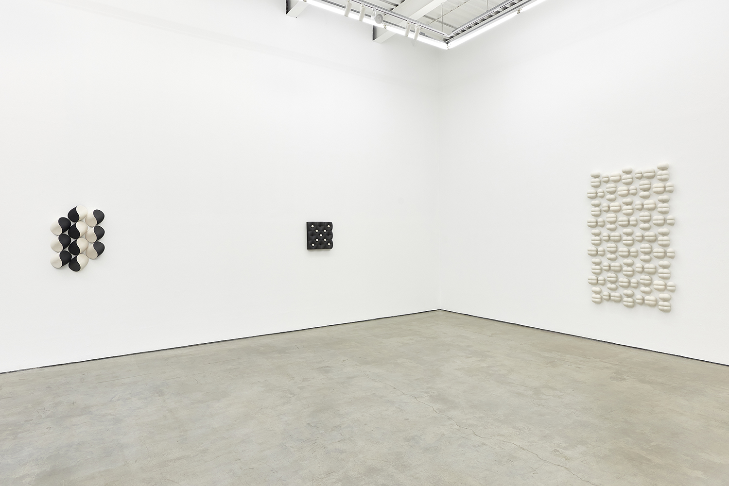 The Hole is excited to announce Jackie Head’s debut Solo Show, Frequencies. Crafted from slip-cast porcelain components that are designed using a myriad of pattern-making methods, Jackie Head creates large-scale wall works with eye-catching colors and intricate compositions. Made up of hundreds of small units, these ceramic panoramas envelop the viewer in an other-worldly geography.