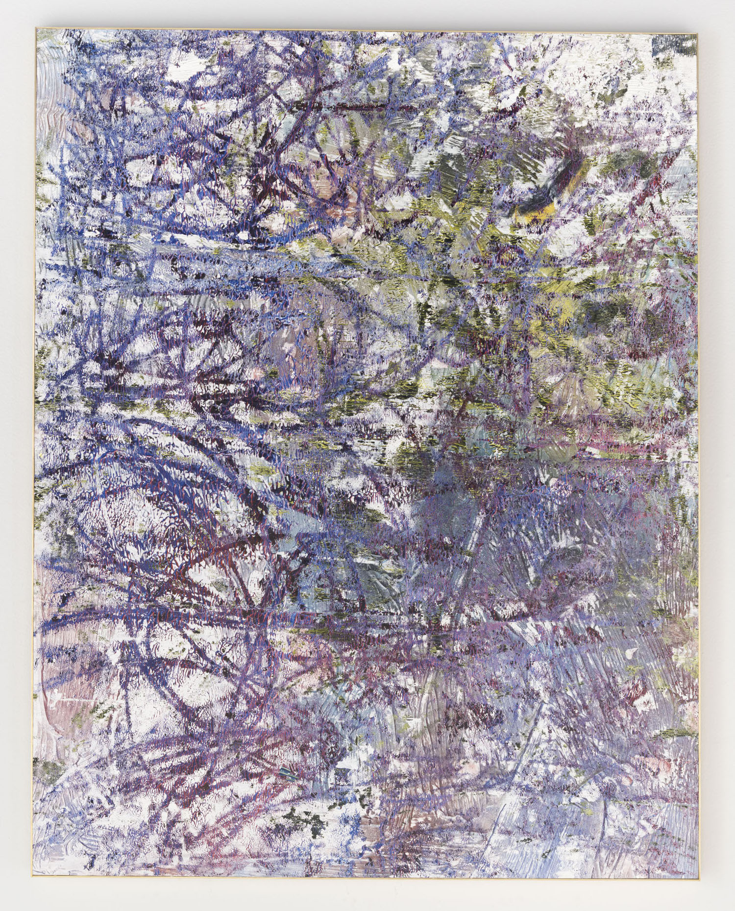 While obviously doing some very advanced things with acrylic, the artist is not super obsessed with the process and instead focuses on composing the works with consideration, not merely to flaunt the technique. Building up a painting in layers is of course very classical however here the artist doesn’t have complete control of each layer; with clear gel or white paint as like the “transfer coefficient’, the colors and composition aren’t visible during the application of layers. A lot of happy accidents form, a lot of unhappy accidents get removed or discarded.
