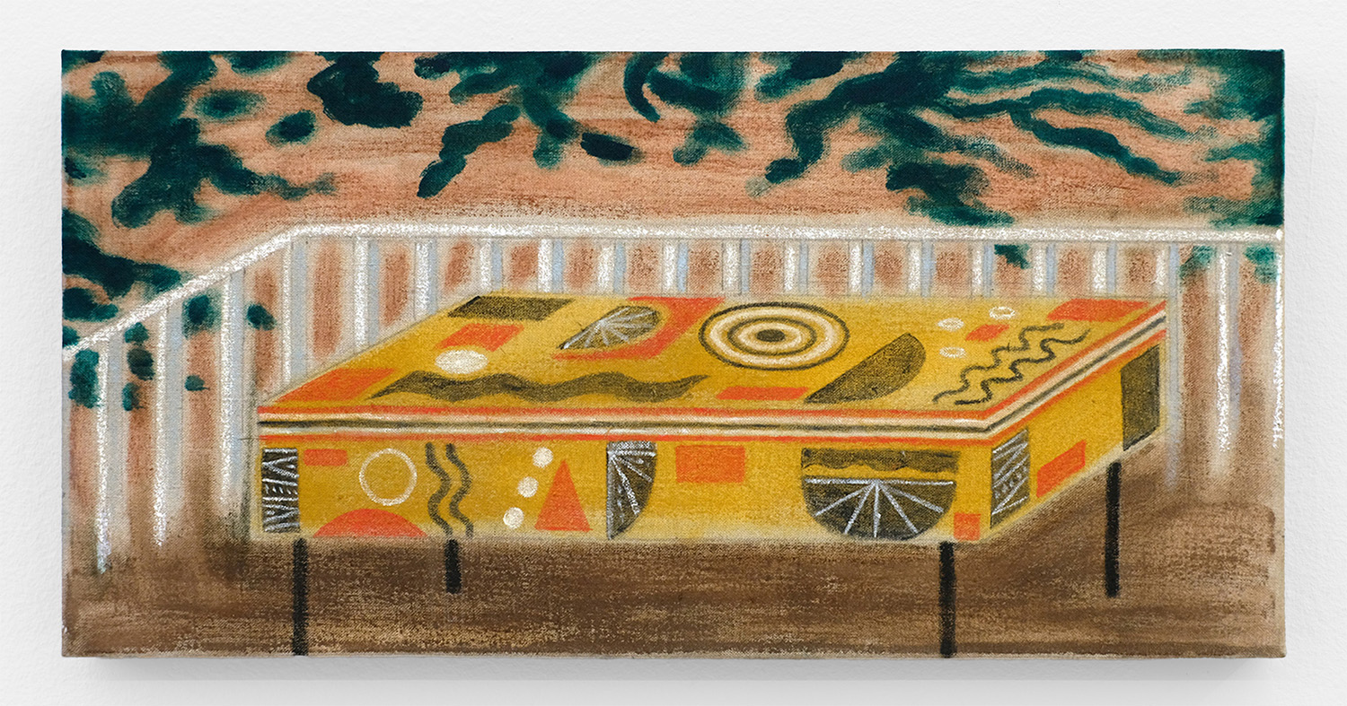 Julian MacMillan, Fantasy Coffin, 2025, oil on linen, 10 x 20 inches, 25 x 51 cm