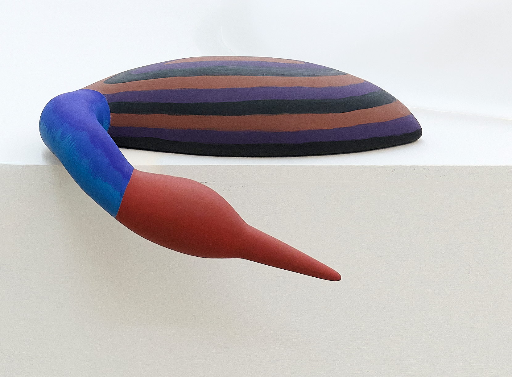 Julian MacMillan, Regretful Decoy, 2026, wood, glue, paint, steel, 4 x 14 x 12 inches, 10 x 36 x 30 cm