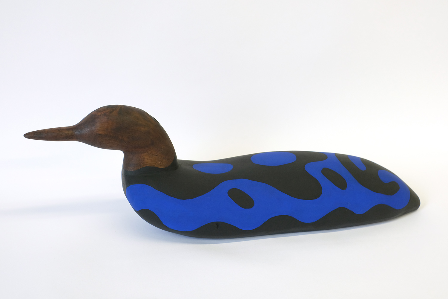 Julian MacMillan, Blue Loon Decoy, 2025, wood, glue, paint, 10 x 22 x 6 inches, 25 x 56 x 15 cm