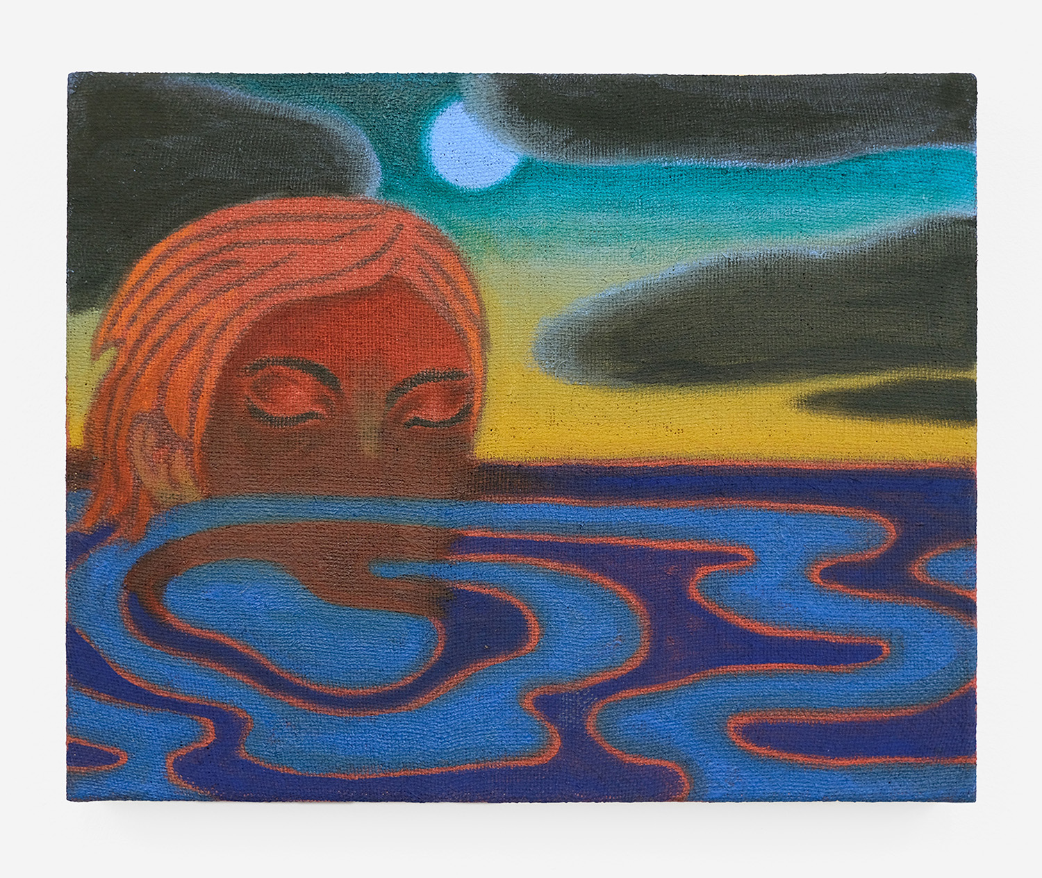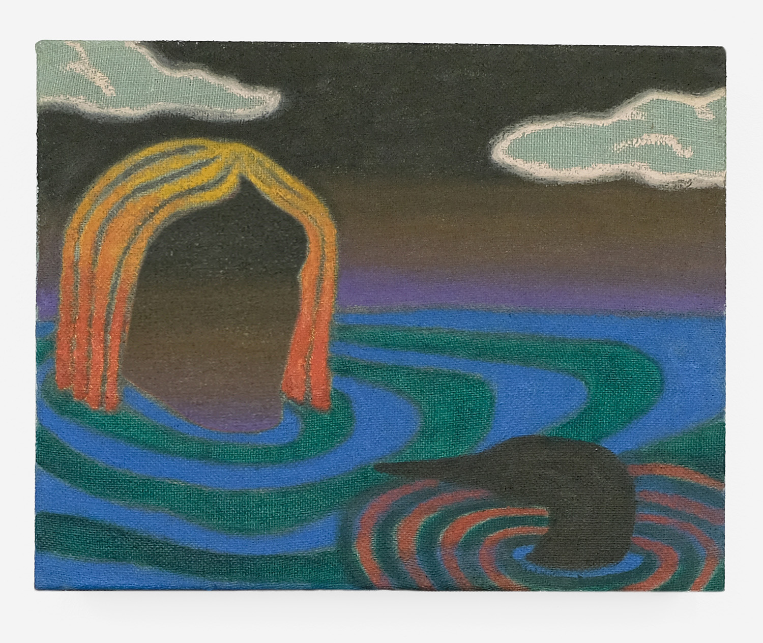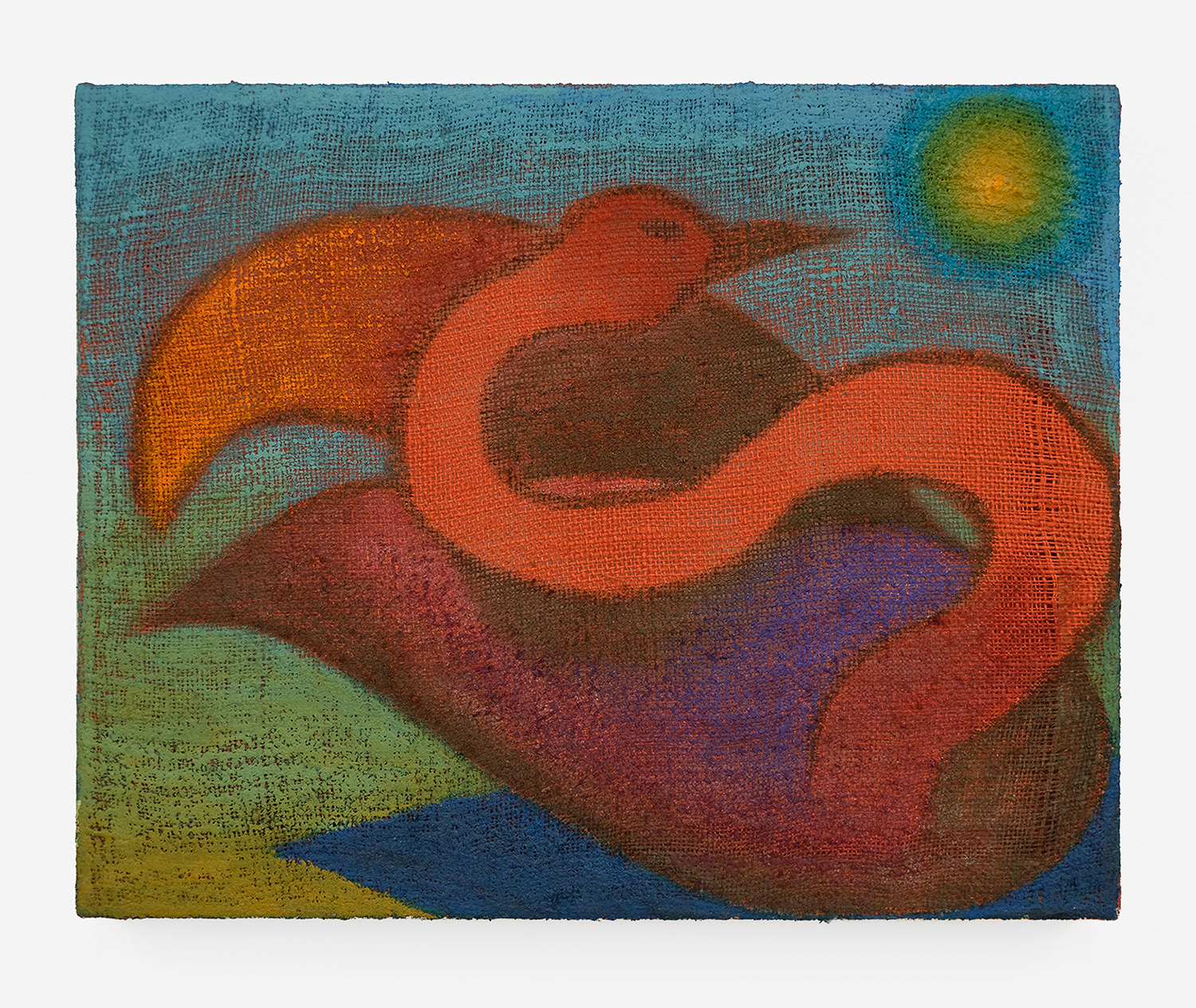 Julian MacMillan, Emerging Loon, 2026, oil on dyed burlap, 16 x 20 inches, 41 x 51 cm
