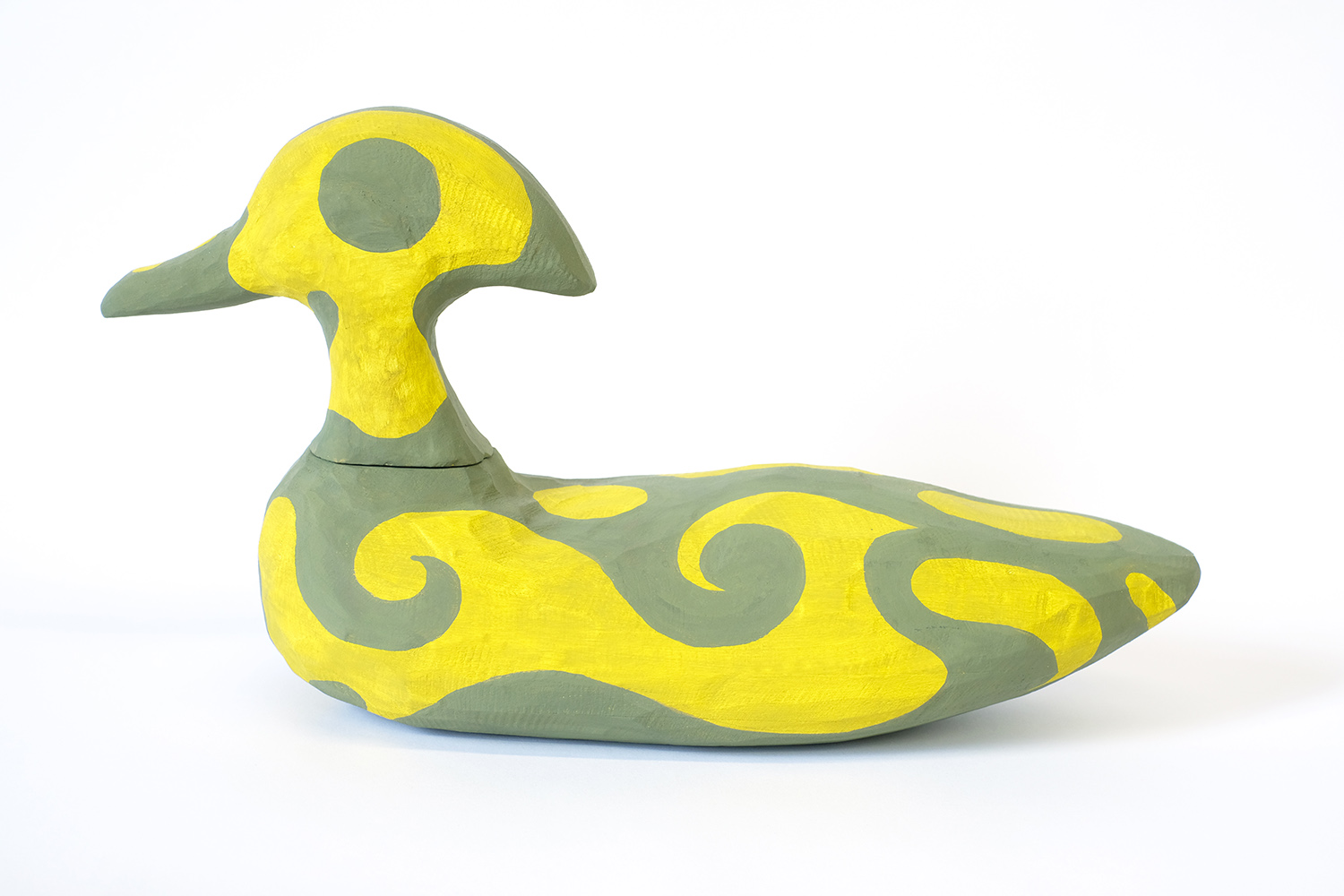 Julian MacMillan, Green Duck Decoy, 2025, wood, glue, paint, 10 x 16 x 5 inches, 25 x 41 x 13 cm