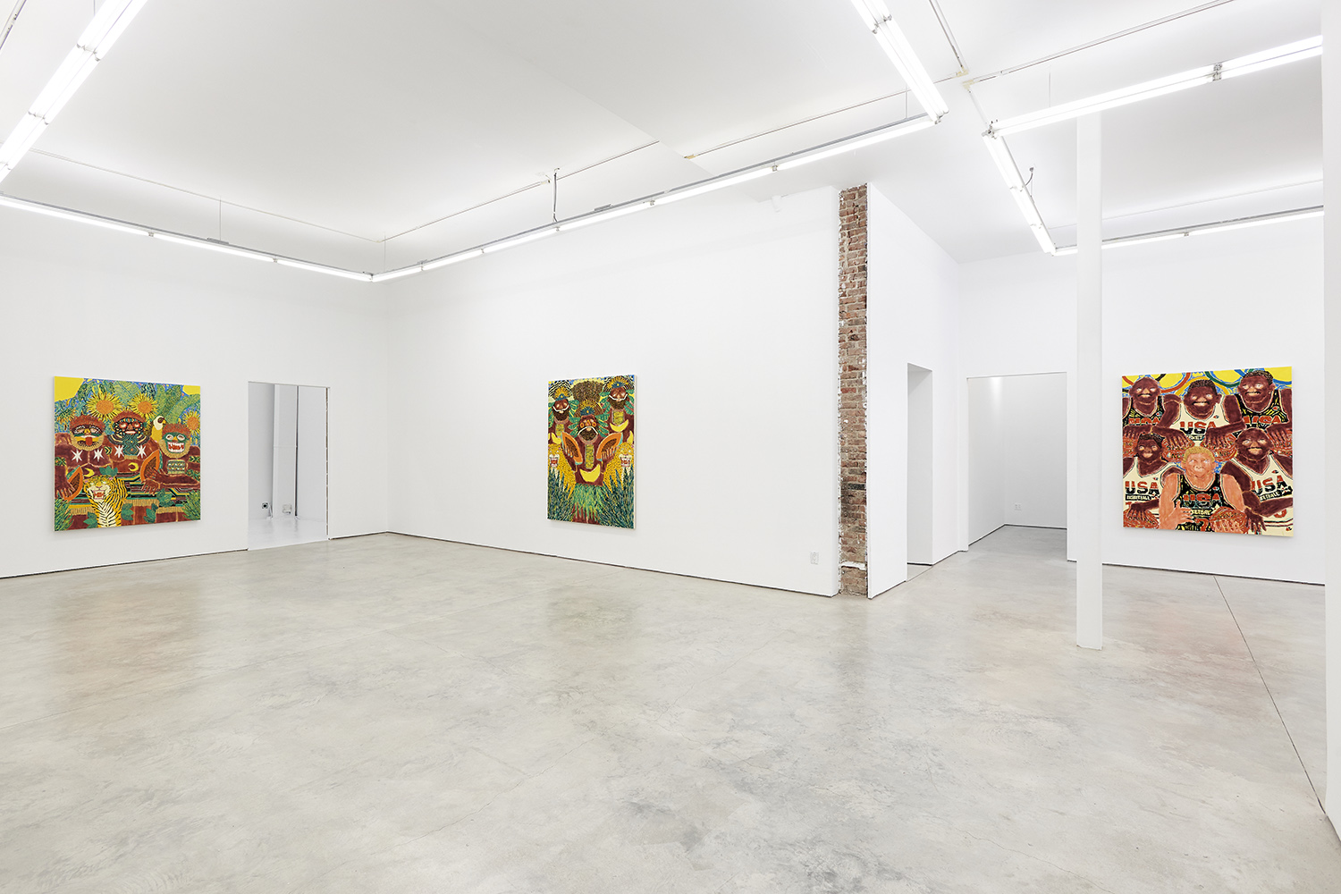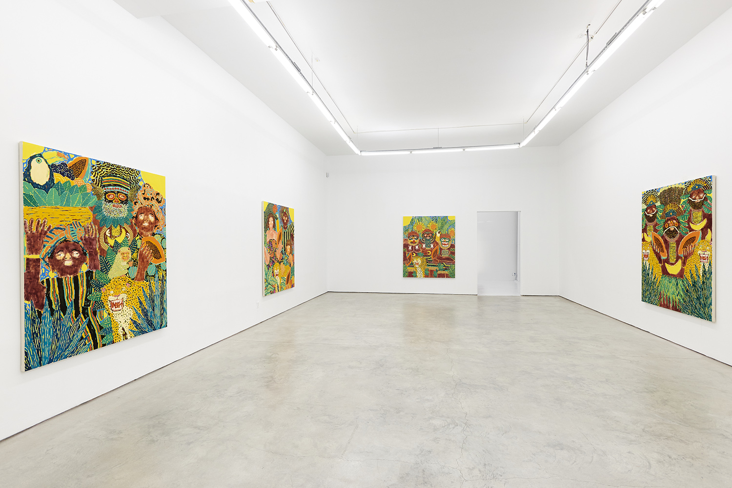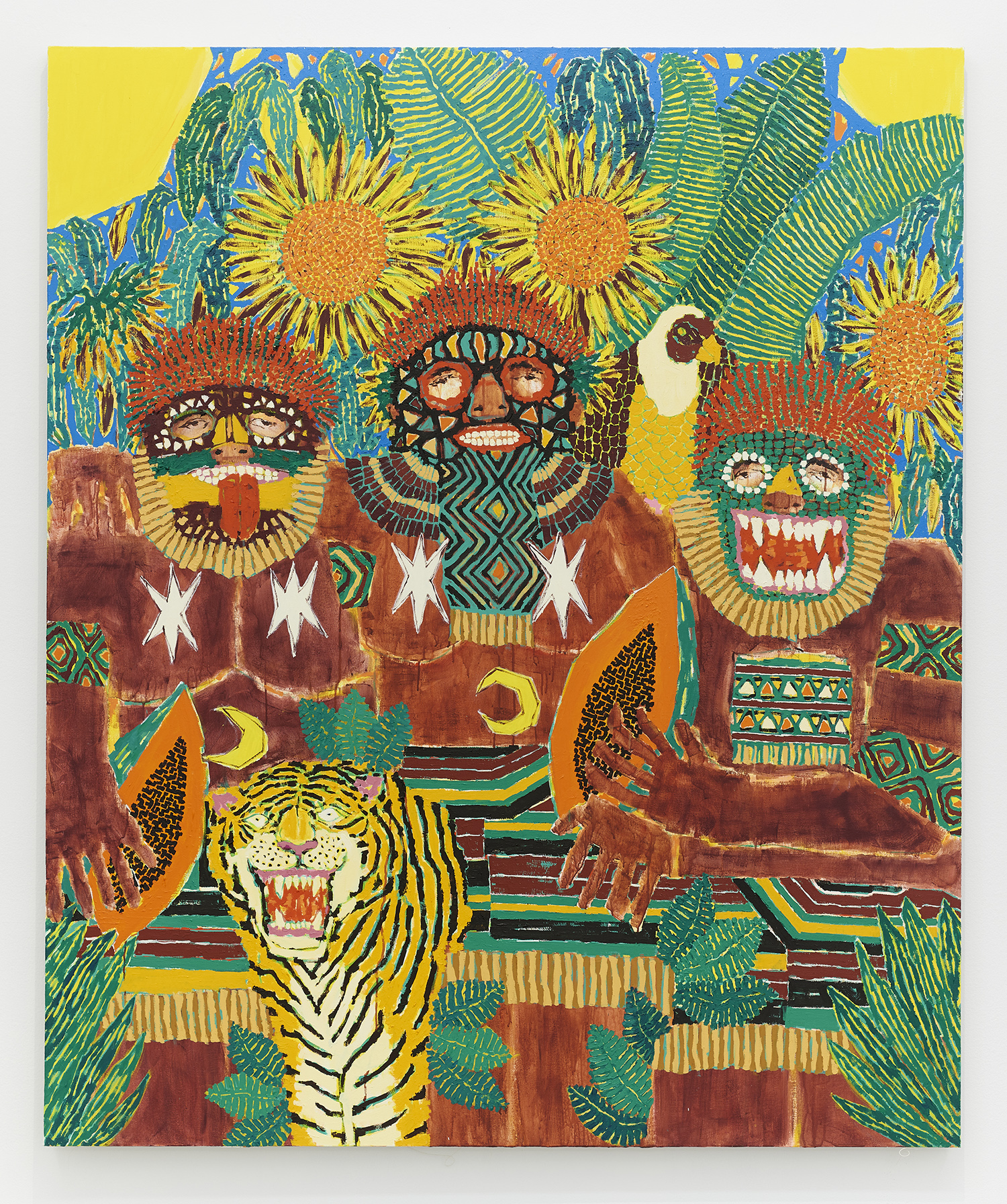 Jaguar Men, 2020, acrylic and oil on canvas, 72 x 60 inches, 183 x 152 cm
