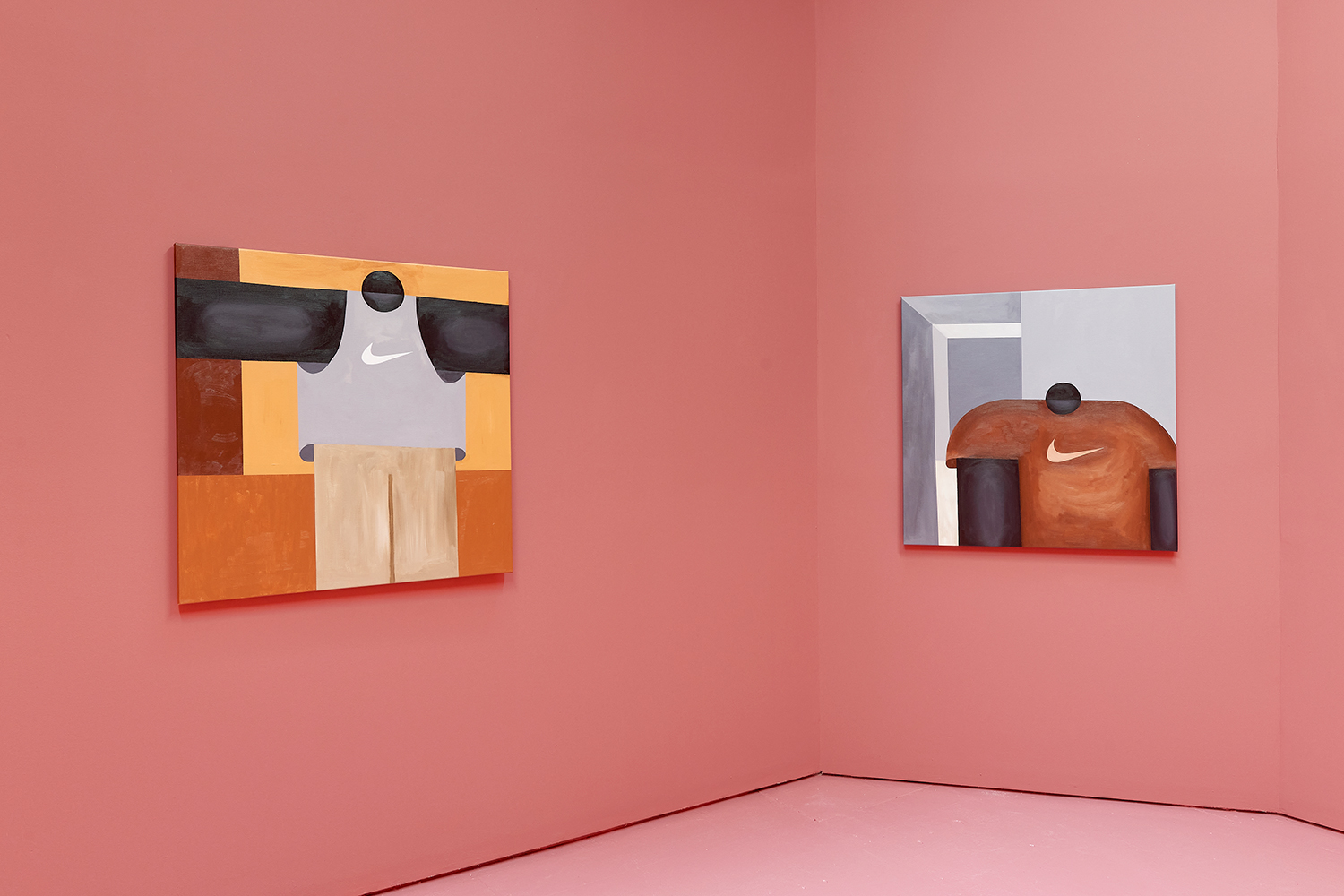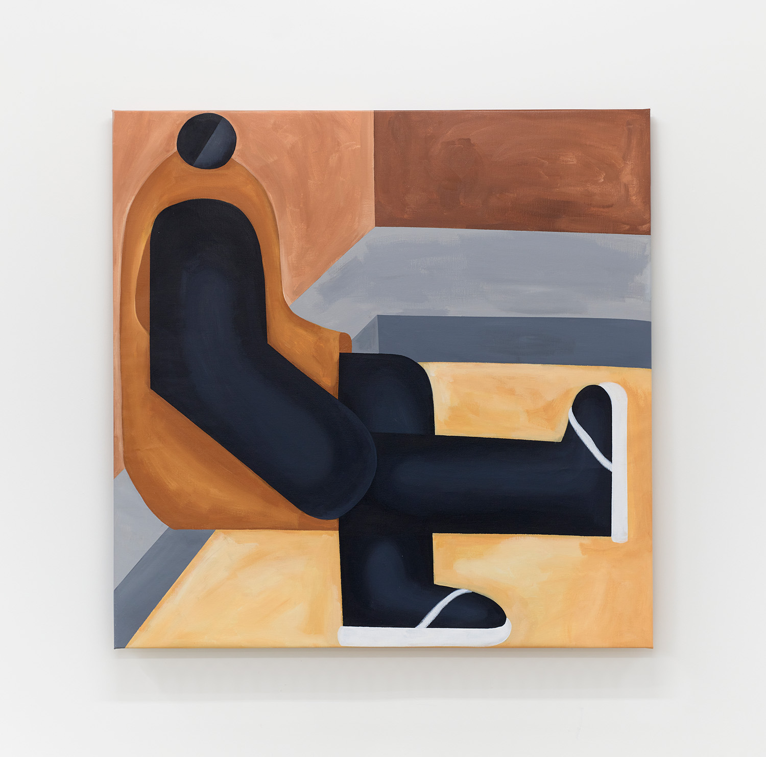 A self-taught artist working in the Greater Accra Region, Innocent has just begun to exhibit work in the past two years. Educated in journalism, Innocent was drawn to the Bauhaus movement and a minimalist aesthetic from the very beginning. He likes focusing on form and architecture with directness and straightforwardness, inspired by greats like Hockney and Hopper as well as contemporaries like Geoff McFetridge. A few pop culture references creep into Innocent’s work—flip flops or Nike t-shirts—giving the protagonist of his paintings a bit of personality and place.