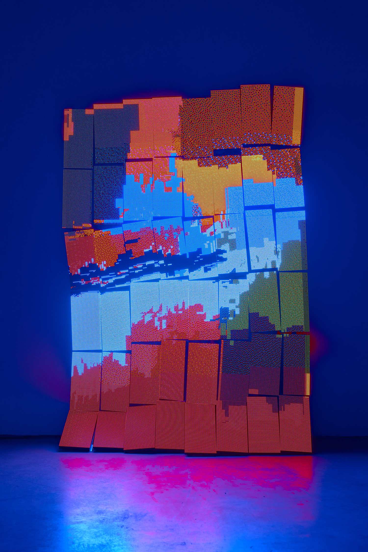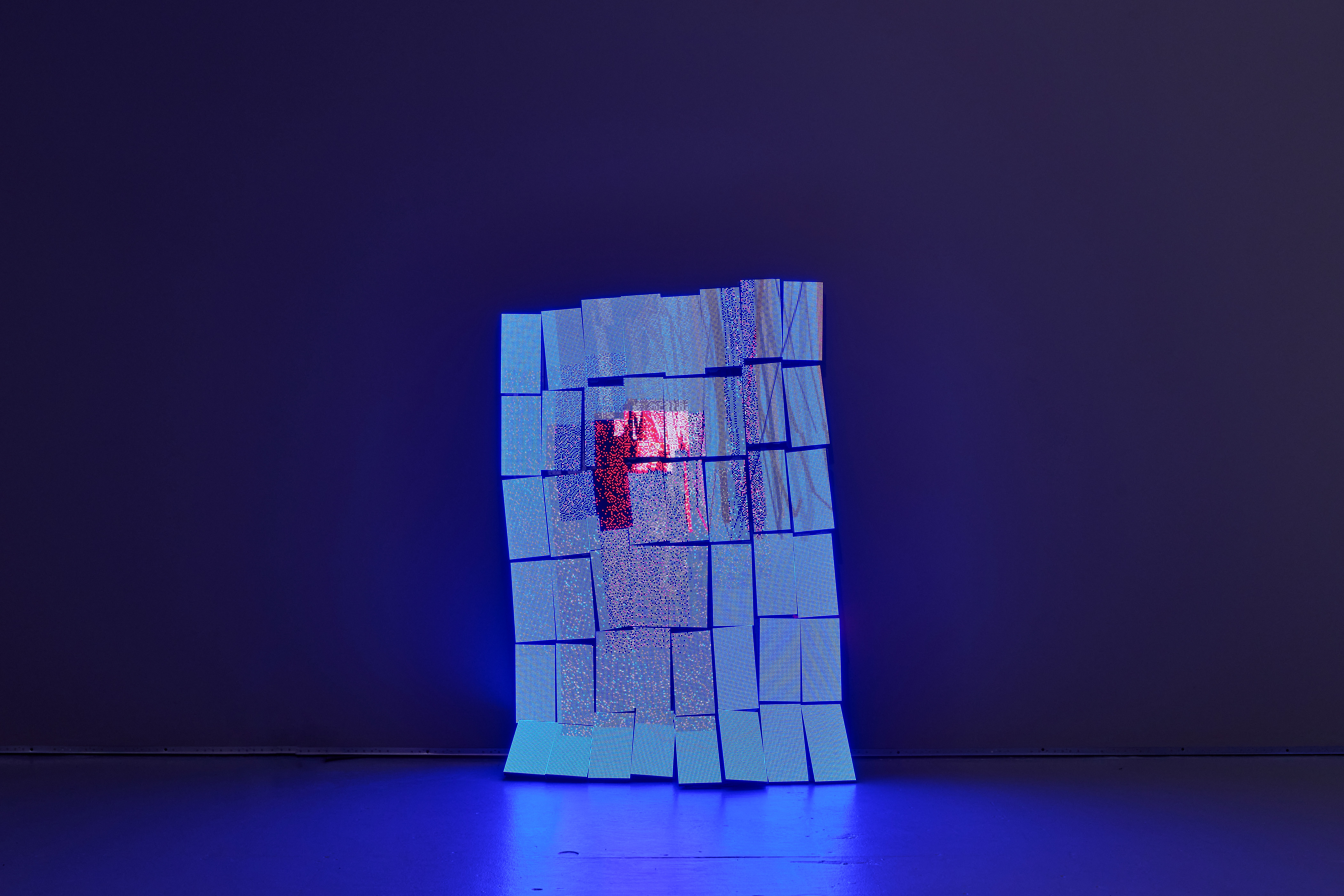 Luke Murphy, Is It Done?, 2025, LED matrix panels, steel armature, display hardware, power supplies, mini-pc, software, code, 61 x 41 x 12 inches, 155 x 104 x 30 cm