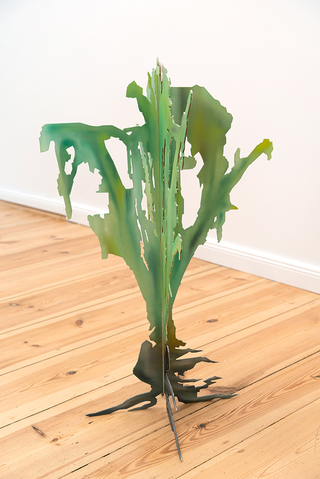 Bezimienny, Swamp Herb (pl. Bagienne Ziele), 2020, oil paint on wood panels in 3 pieces, 31.5 x 16 x 16 inches, 80 x 40 x 40 cm each