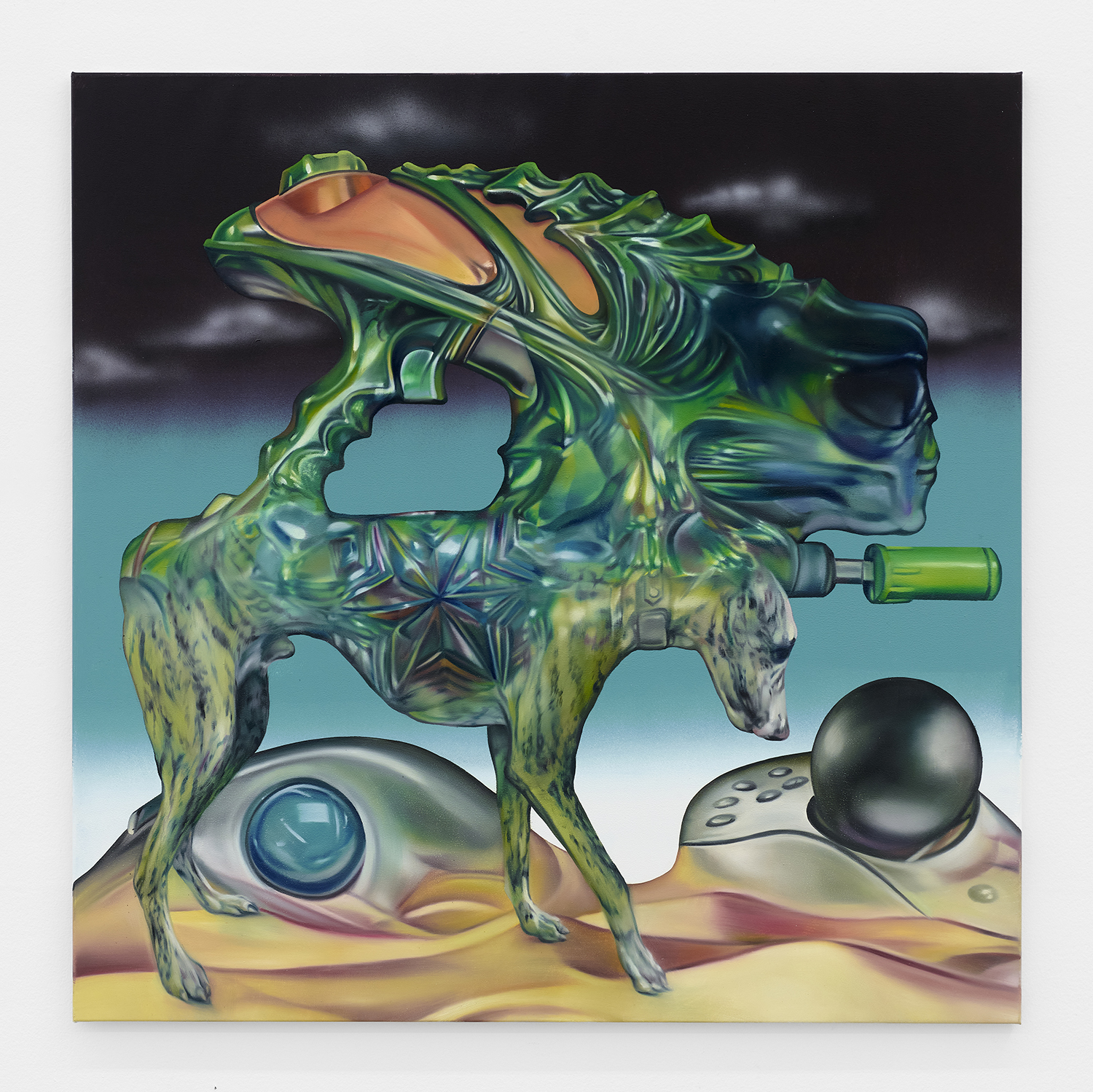 Botond Keresztesi, Camouflage Dog, 2025, acrylic and oil on canvas, 55 x 55 inches, 140 x 140 cm