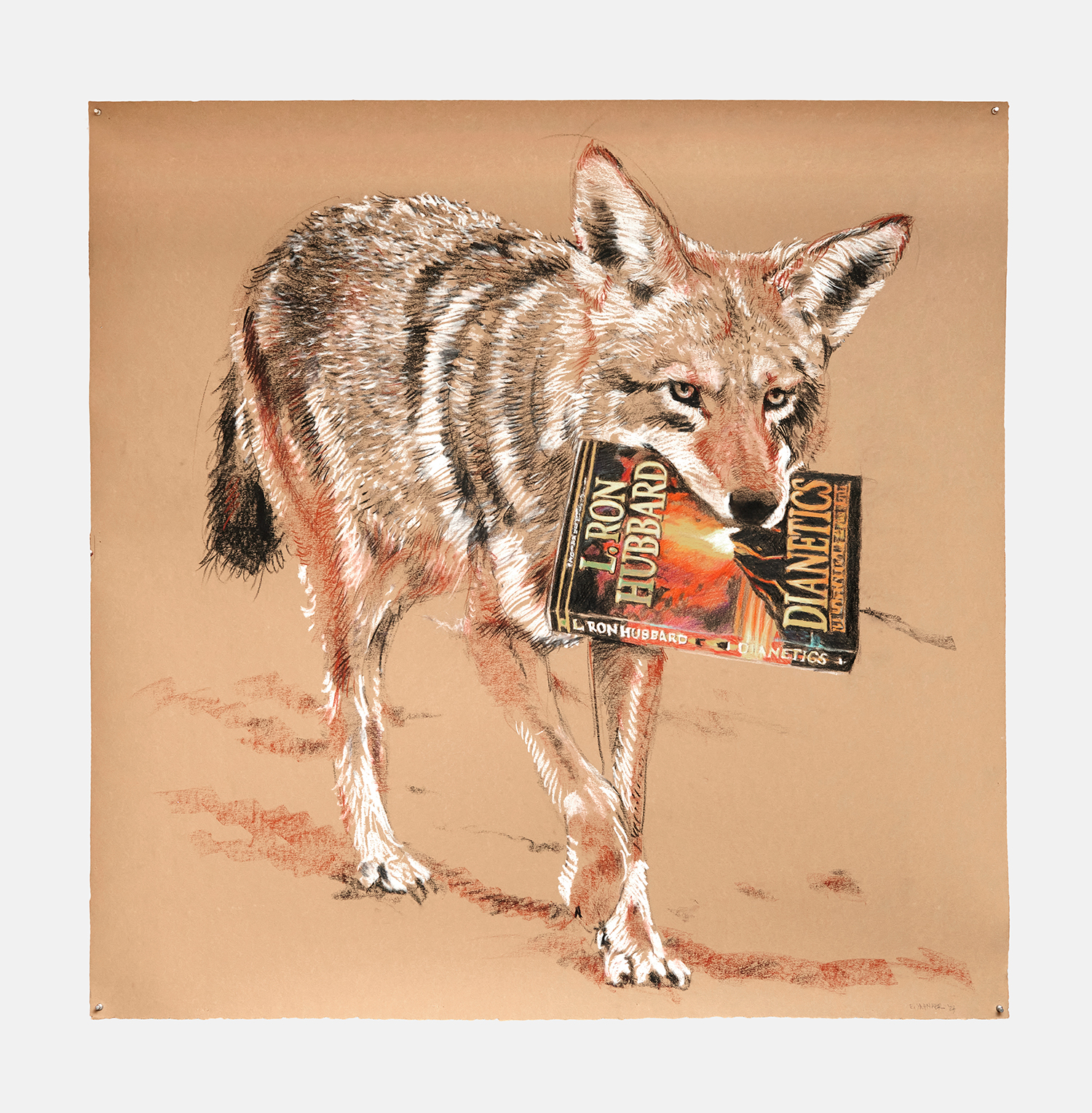 El Coyote, 2023, Charcoal and conte crayon on Stonehenge, 45 x 45 inches, 114 x 114 cm.