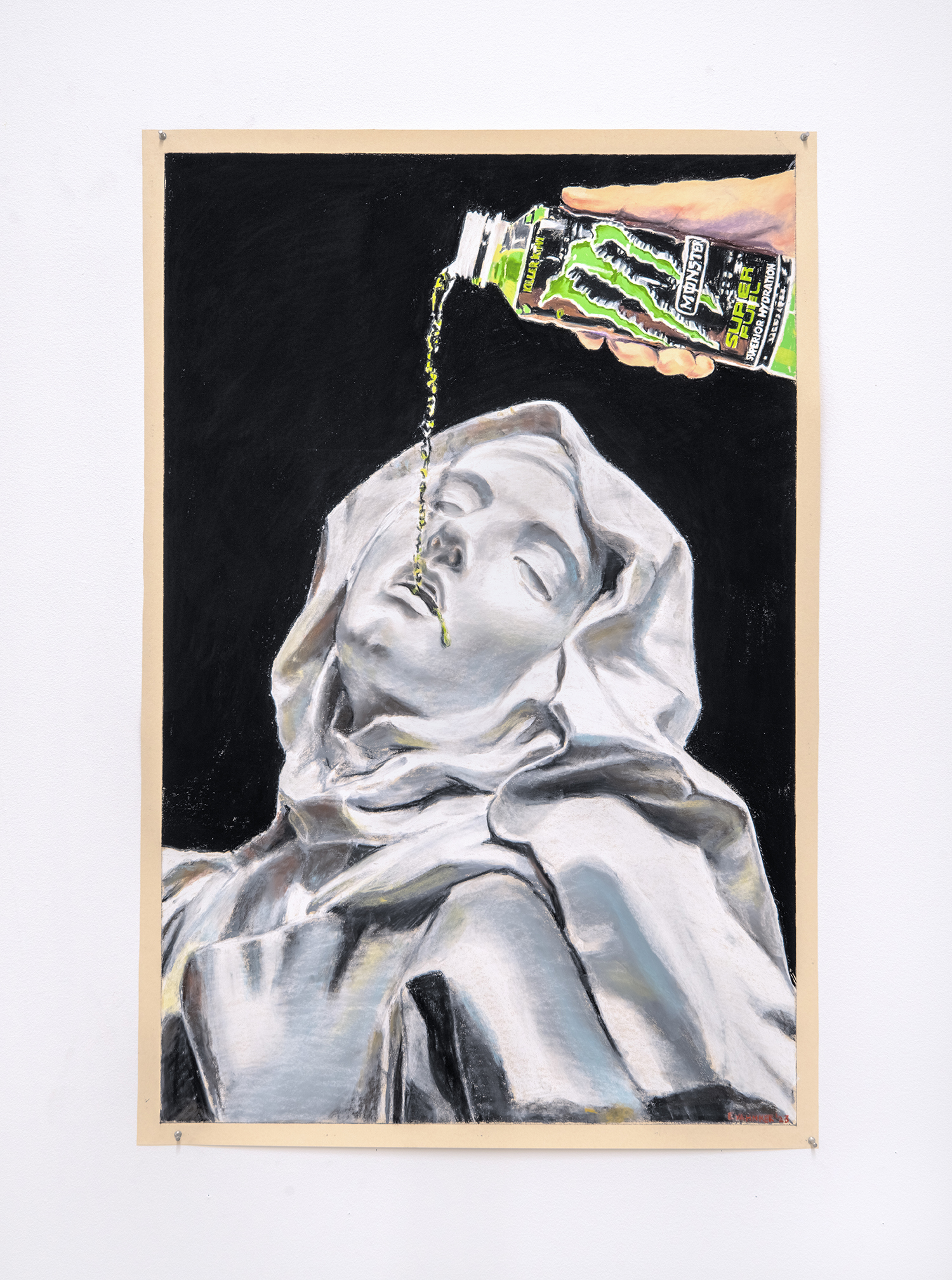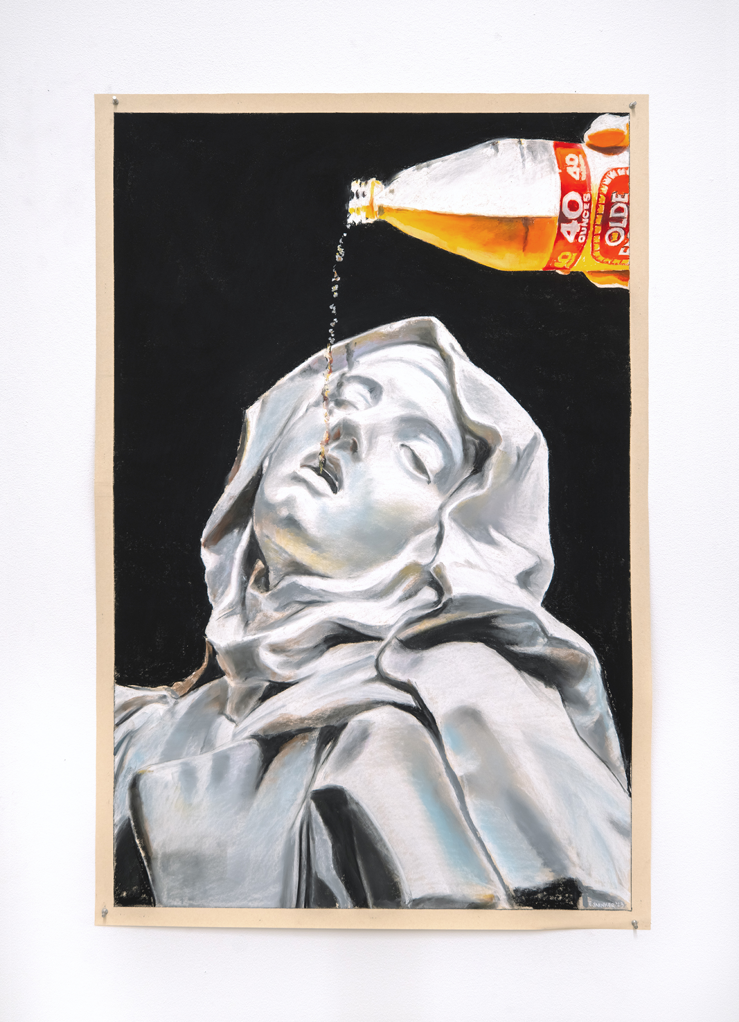 The Quenching of St. Teresa (Old E), 2023, Pastel on sandpaper, 45 x 30 inches, 114 x 76 cm.