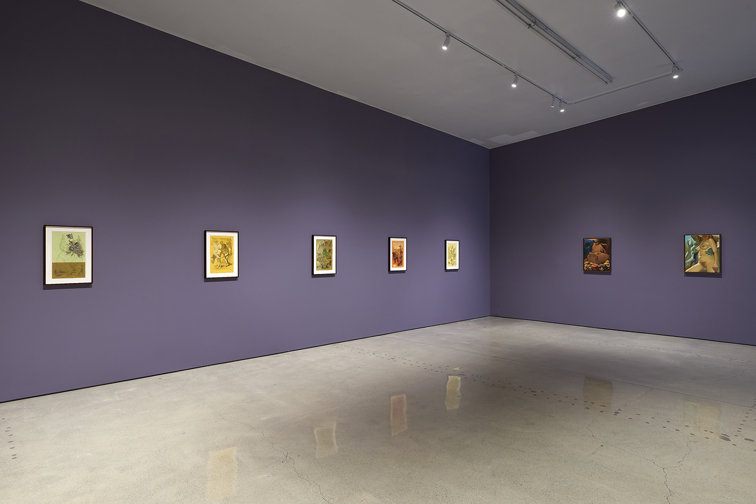 The main gallery features a bestiary of demons, pixies and nude men and women in all kinds of entanglements, poses and rituals. The human figures are painted from clippings from 1960s and ‘70s brochures for West Coast nudist colonies, while their demons, with scaly bodies, attenuated snouts and poulaine-toed feet, recall the morality paintings of Hieronymus Bosch. Hansel’s allegorical twist: instead of admonishing the viewer, he aims to enchant them, conjuring a universe in which, he says, “people are able to live beside and enjoy their demons in a way that they can’t in the real world.”