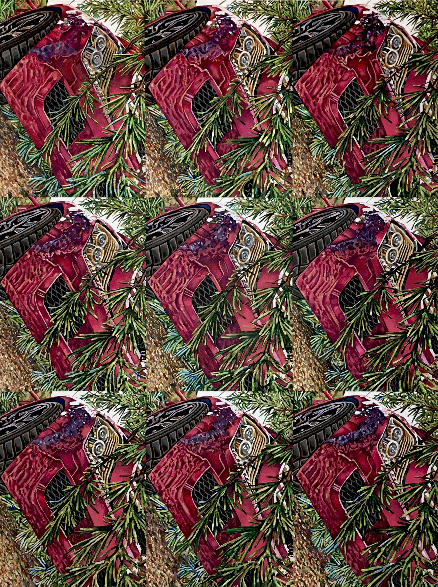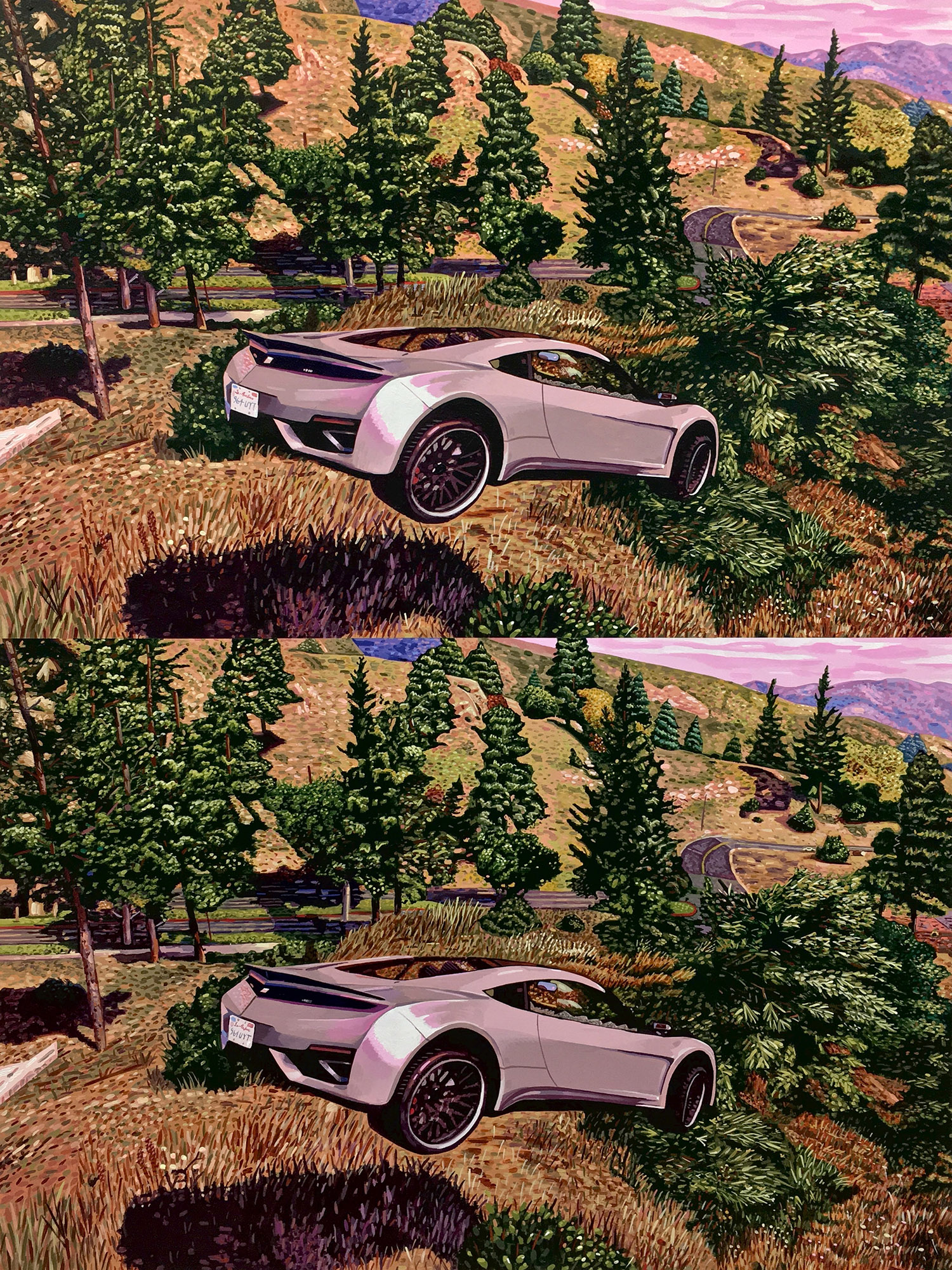 Mathew Zefeldt, Car Crash, acrylic on canvas over panel, 2018, 48 x 36 inches, 122 x 91 cm.