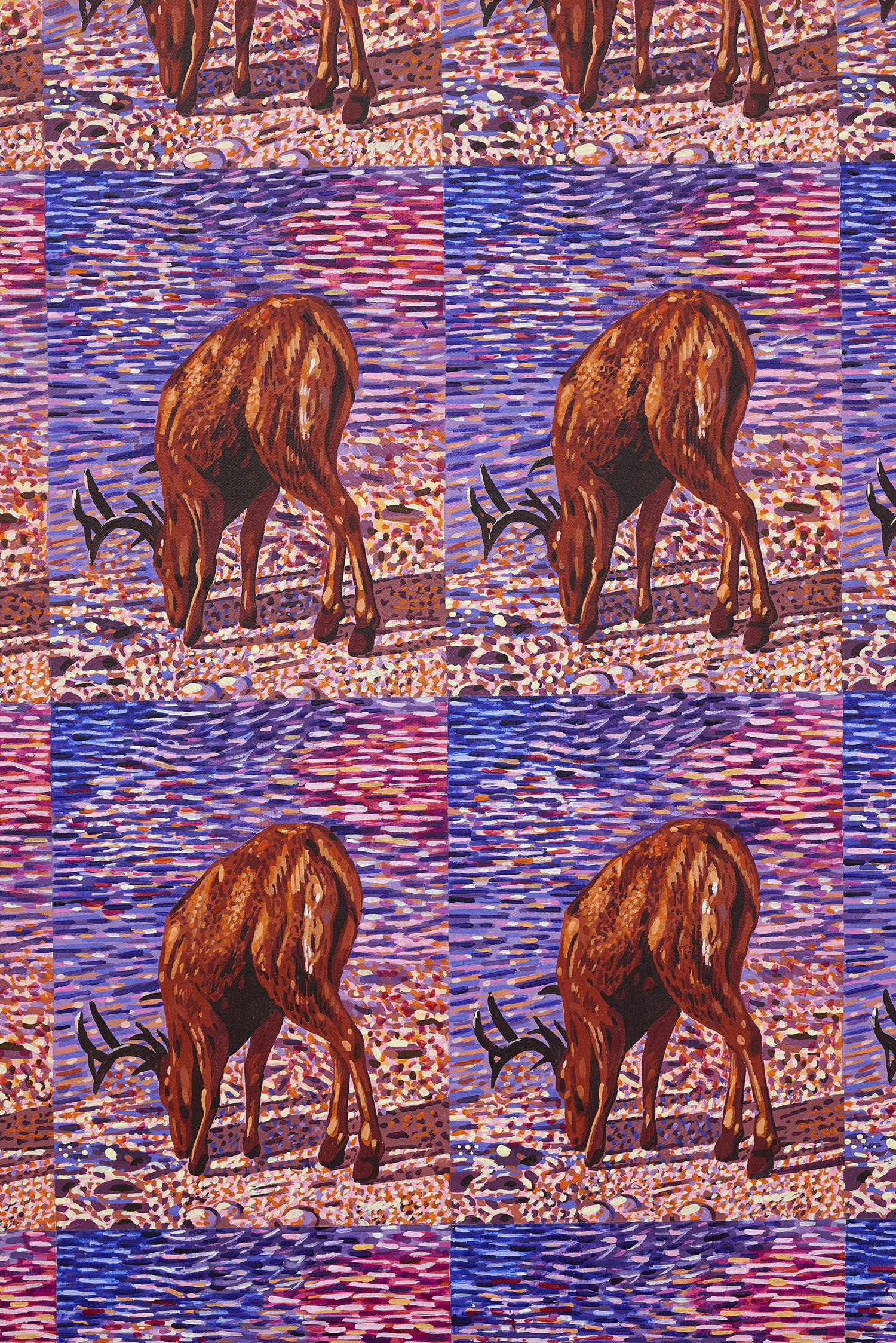 Mathew Zefeldt, Buck and Stream, 2018, acrylic on canvas over panel, 48 x 36 inches, 122 x 91 cm.