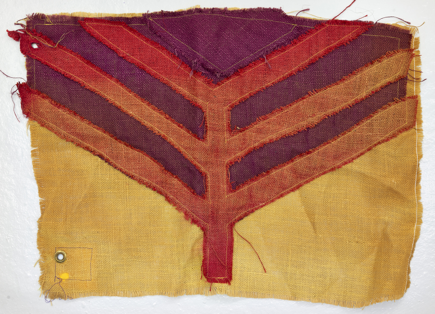 Julian Gross, Show Your Bones Flag (Original Cover Art), 2006. Burlap, thread, rivets, 25 x 18 inches, 63.5 x 45.7 cm
